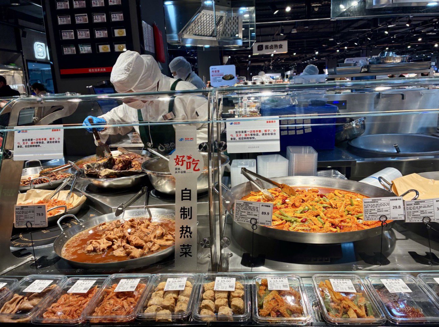 物美双井门店的热菜熟食区。(图片拍摄:界面新闻赵晓娟)