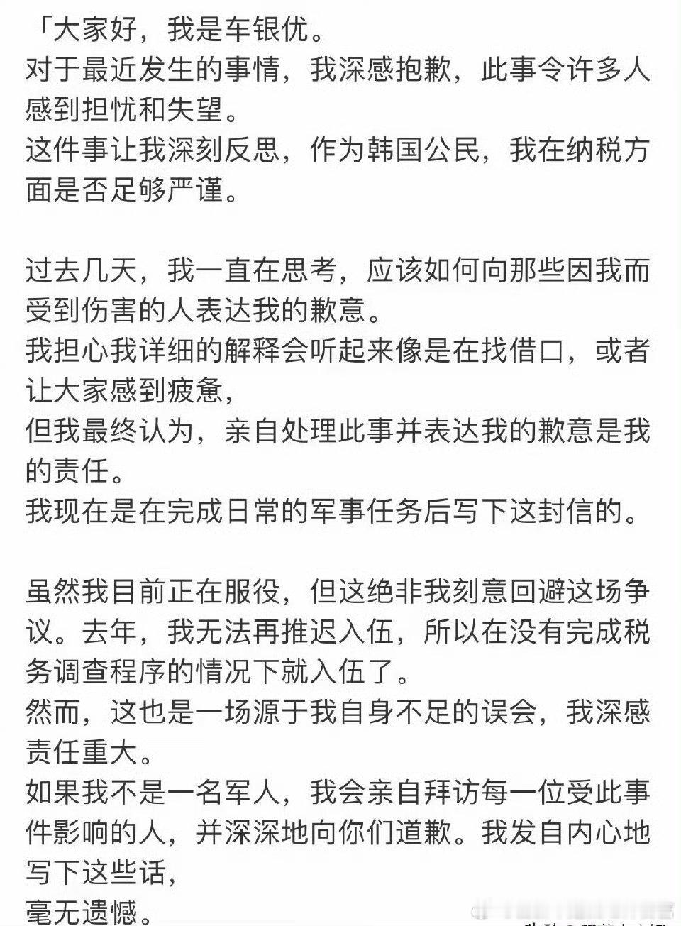 实在是震撼 不过在补缴了200亿韩元的情况下他是不是就不用进去了? 车银优发长文道歉