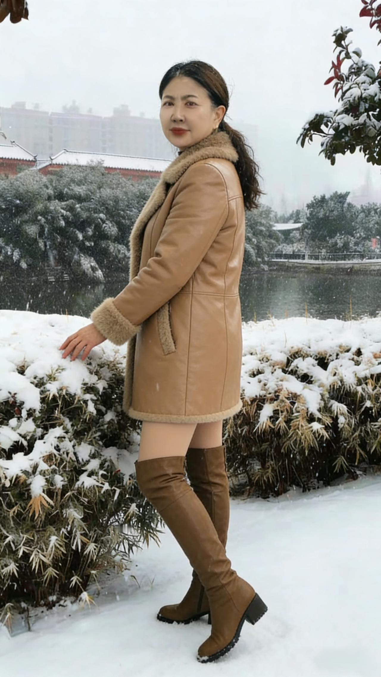 驼衣披暮色,素裙曳晚风。 长靴踏幽径,疏影过芳丛。 灯影摇青霭,衣香拂软红。 行