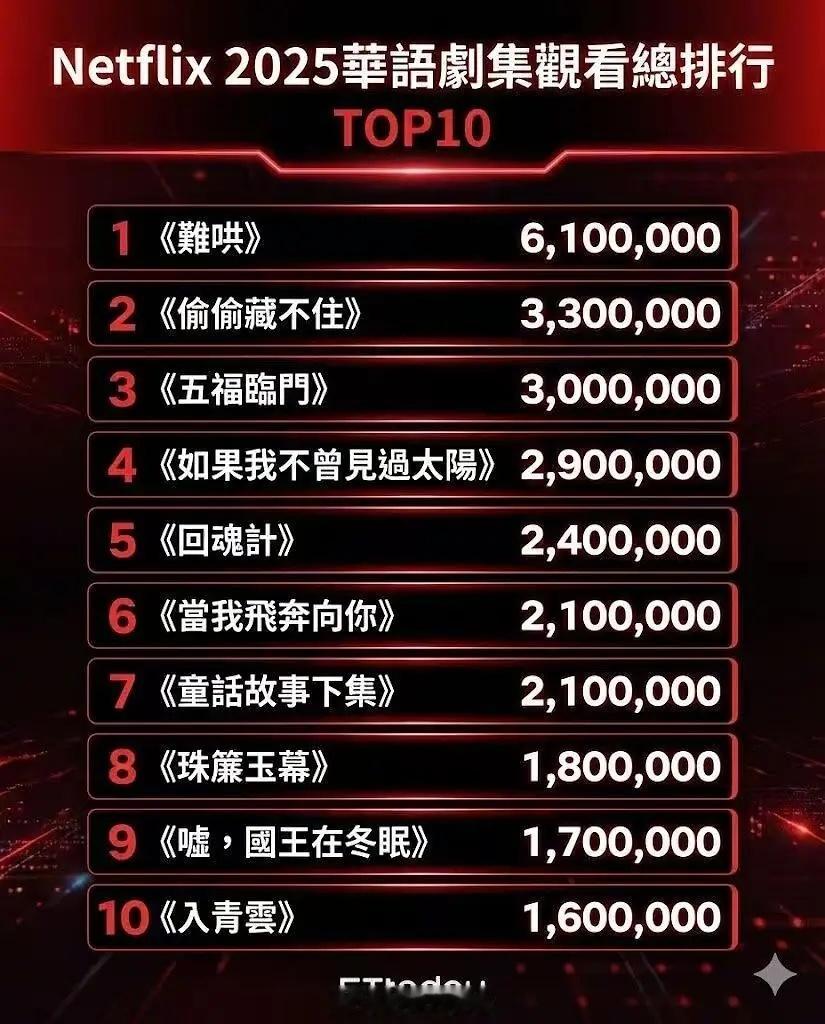2025华语网飞收视排行,前十的头尾白敬亭要了