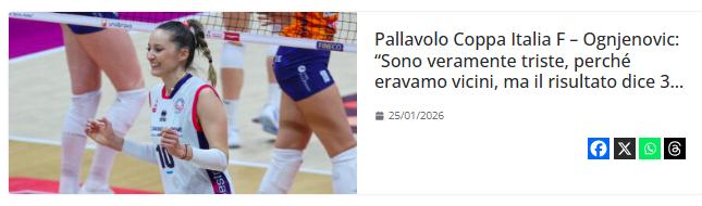 难以释怀!朱婷旧东家斯坎迪奇队友二传奥格涅诺维奇:"我真的很难过,因为我们很接近胜利,但结果是 0-3"。 来源:电子排球杂志
