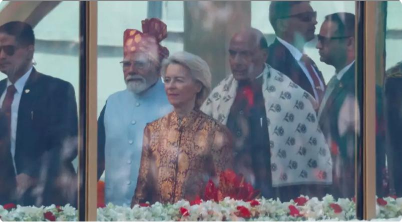 印度国庆阅兵欧盟主宾出席 印欧即将签署自贸协定 印度今年有望成为世界第四大经济体,2024 年印度与欧盟的贸易额达到 1 千 200 亿欧元,十年间增长近 90%,服务贸易额达到 600 亿欧元。 周一,欧盟领导人作为新德里政府的贵宾,出席了印度共和国日阅兵仪式,他们即将与印度政府签署一项雄心勃勃的自由贸易协定。 据 01 月 26 日法新社报道,在首都新德里举行的阅兵式上,印度展示了步兵、骑兵、骆驼兵、各类车辆、导弹、无人机或飞机,以及去年 5 月与巴基斯坦发生军事冲突时动用的部队和装备。 印度总理莫迪在阅兵式开始前致辞说:"这次活动标志着我们共同建设发达印度的决心"。 在观礼台上,欧洲理事会主席科斯塔和欧盟委员会主席冯德莱恩坐在印度总理莫迪身边。 欧盟和印度已就自由贸易协定进行了 20 多年谈判,美国总统特朗普发动的关税战,加速了该协定的达成。双方希望在周二举行的双边峰会上签署这份自由贸易协定。 根据欧洲统计数据,印度今年有望成为世界第四大经济体,2024 年印度与欧盟的贸易额达到 1 千 200 亿欧元,十年间增长近 90%,服务贸易额达到 600 亿欧元。 印欧双方都在寻求新市场,以摆脱美国的关税和中国对出口的管制。 来源:rfi