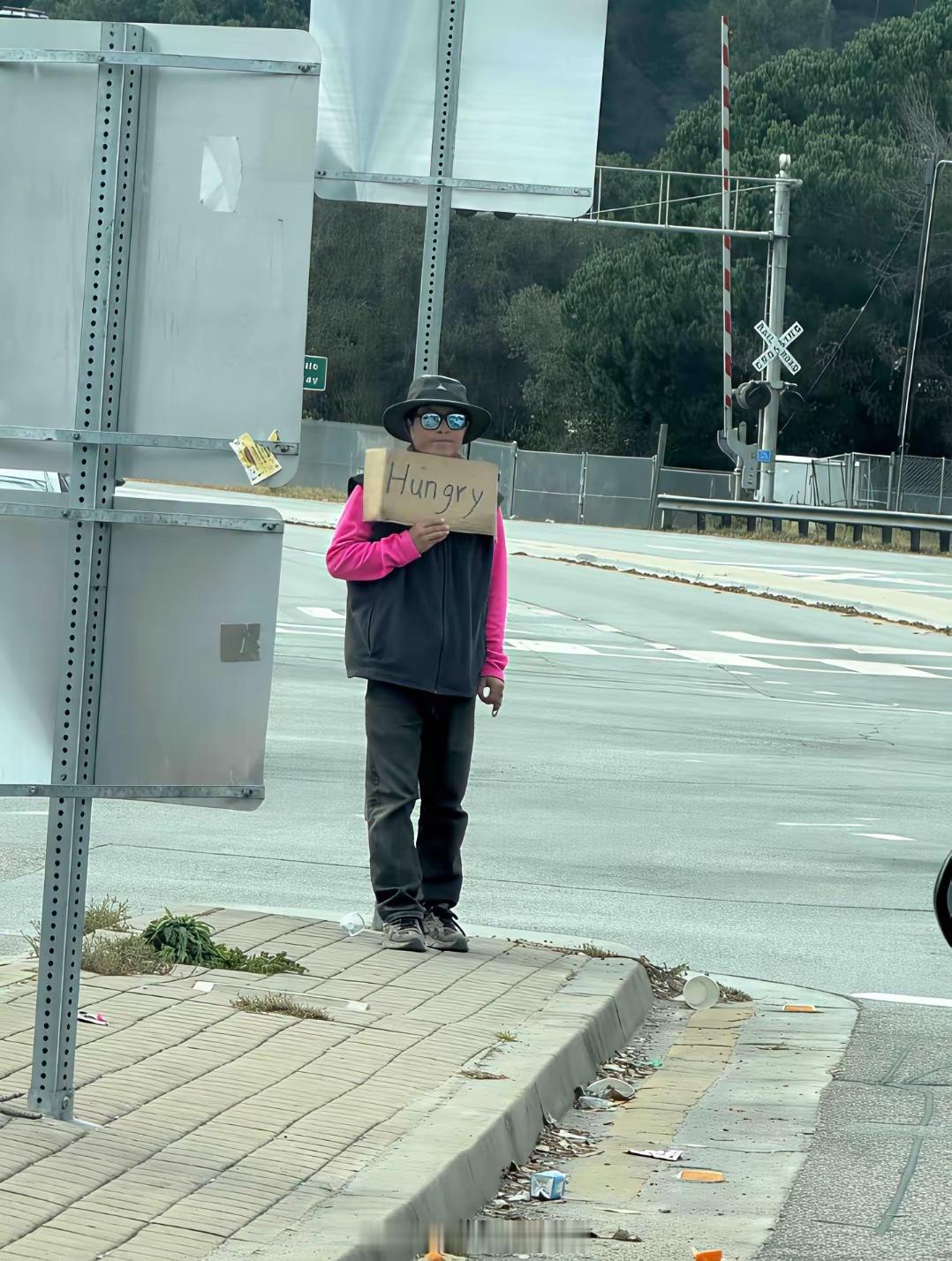 甜甜圈饿的在街头举牌子要饭海外新鲜事热点现场