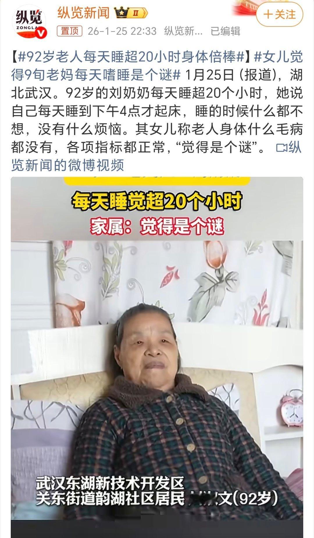 92岁老人每天睡超20小时身体倍棒原来规律作息都没啥用,随心所欲才行!看人家奶奶每天睡超20小时,身体还倍儿棒,反观咱们定着闹钟早起,硬撑着规律作息,结果浑身都是小毛病。我现在也要困了就睡、累了就歇