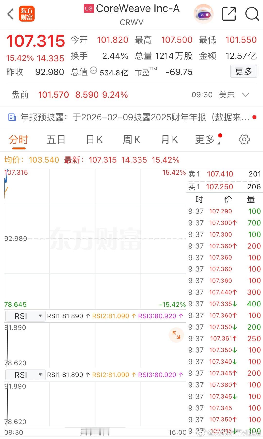 【美稀土公司涨24%,CoreWeave涨9%】1月26日,美股小幅高开,道琼斯