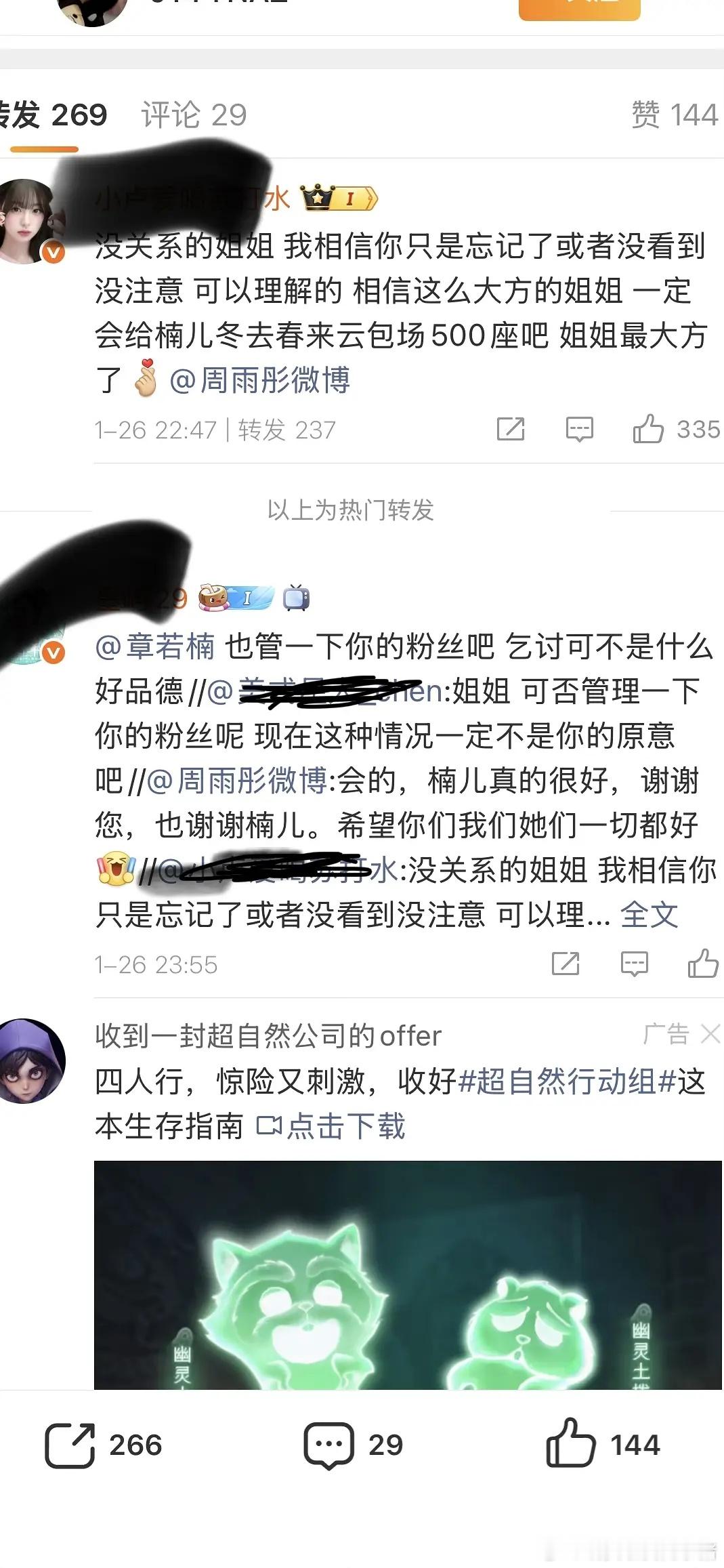 周雨彤亲自回复章若楠粉丝,两家这是咋了