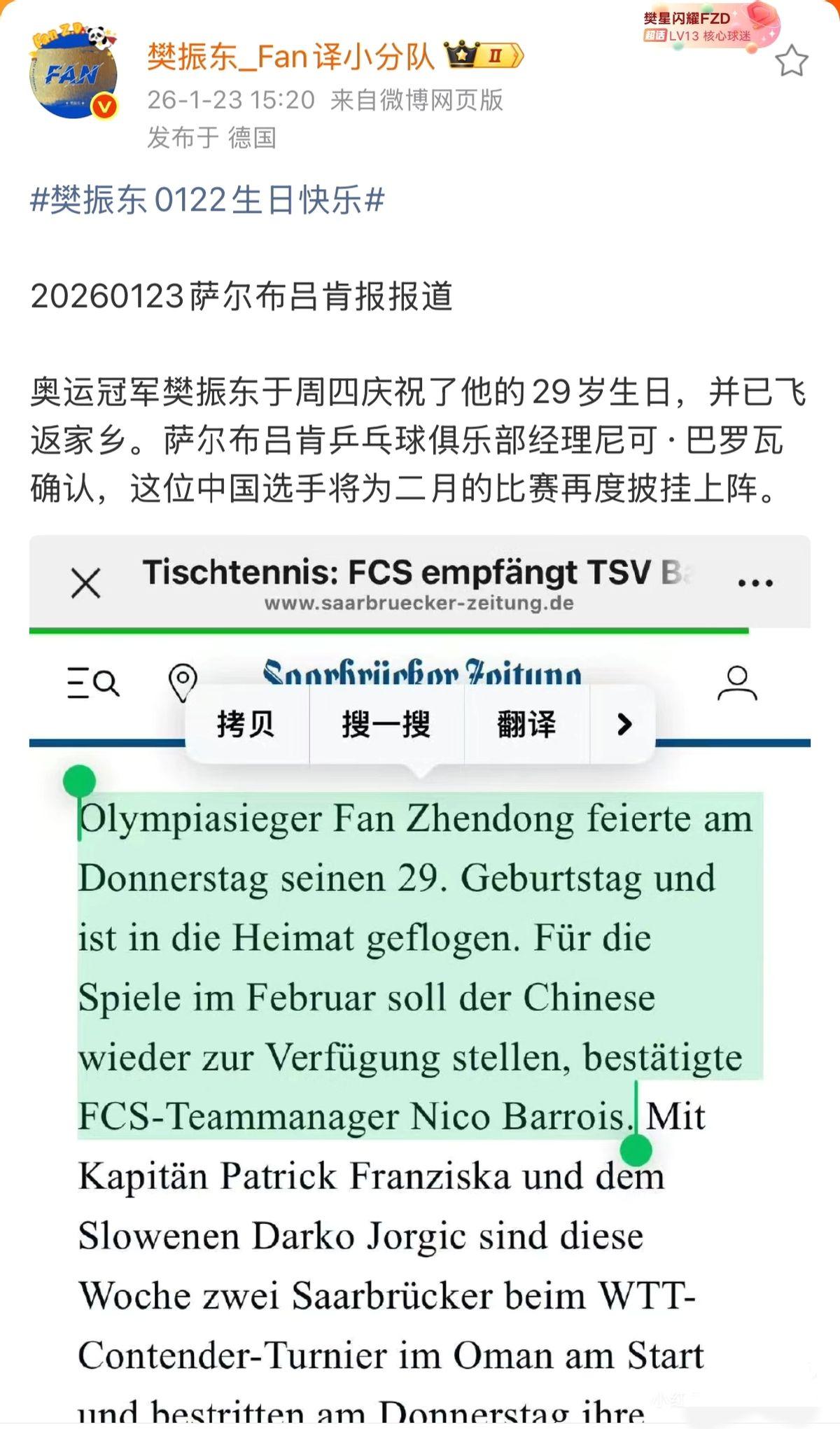樊振东从德国回来了。 生日在比赛间隙里过完,春节的赛程也定在了那边。落地第一站,