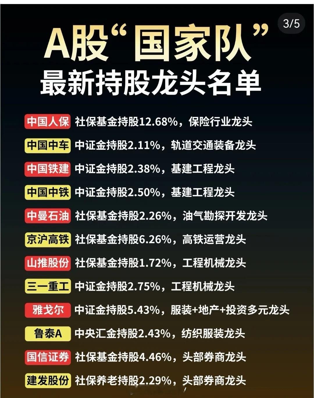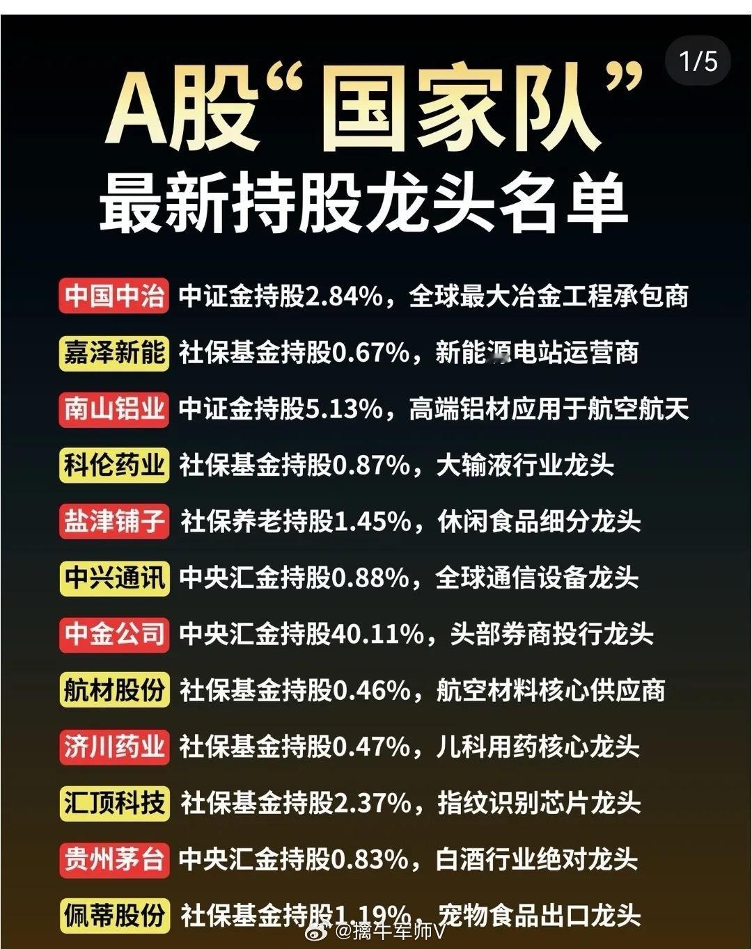 A股GJ队最新持股龙头企业一览