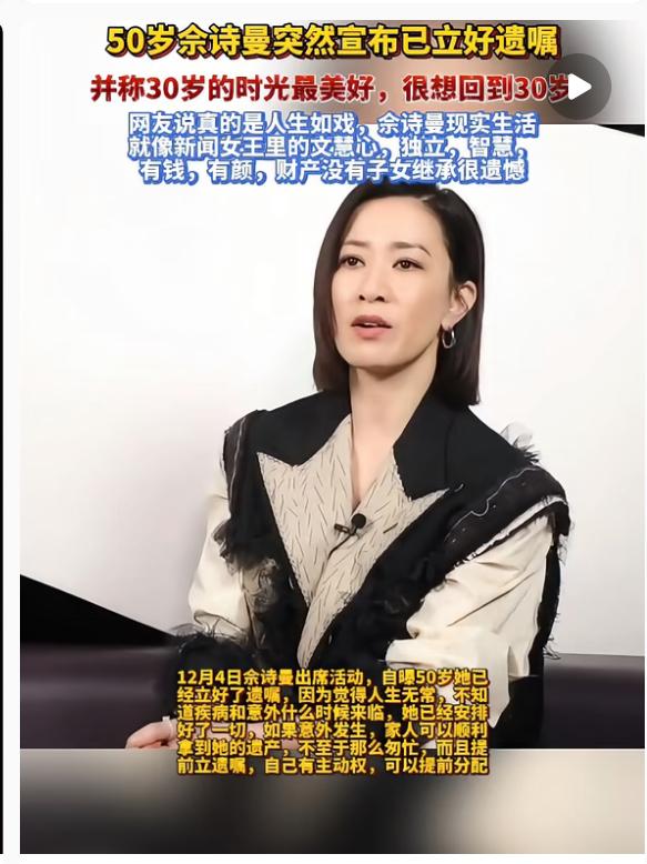 她给所有女性提个醒 可以不婚可以结婚离婚 但一定要有自己的孩子 因为她若回到20年前 或许会选结婚生子 但现在看姐妹为家庭的付出比拍戏还累 真的让她对婚姻的幻想碎了一地。 她立遗嘱把大部分钱留给妈妈和两个兄弟 但看到朋友回家时孩子扑过来喊妈咪我想你 那种甜她羡慕却做不到 她知道自己体力不够 现在生娃太难 事业家庭兼顾更累。她50岁了 感情还空白 不是不想 是看透了 身边姐妹为家庭熬得比拍戏还累 她经济独立 不用向世俗妥协 但偶尔也想 要是有个自己的孩子 老了是不是能多份温暖。 女人的圆满非得是婚姻吗?有自己的孩子 至少老了能有个牵挂吧?