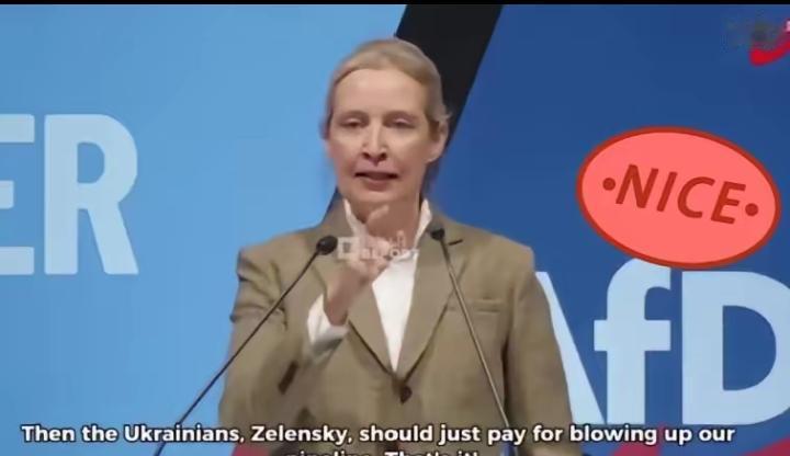 德国政坛炸了锅!1月25日,那位以敢说敢言的德国选择党女大佬爱丽丝·魏德尔,当着全德媒体的面,指着现政府的鼻子开骂:北溪管道被炸,证据都甩脸上了,你们屁都不敢放一个,还拼命给乌克兰送钱!你们说的‘国家利益’,就是泽连斯基口袋里的欧元,是老百姓账单上的天价暖气费,是你们选票上的红勾勾吗?!魏德尔这次火力全开。她直接把北溪事件扯上台面,说证据明摆着。 魏德尔称德国援乌超七百亿欧元,扬言上台即追讨,北溪维修费也要泽连斯基买单。 工业电价四十二欧分一度,巴斯夫裁员七千,大众外迁产线。她直指断气政策摧毁制造业脊梁。 德国法院去年底认定爆炸"极可能受外国指使",嫌疑指向乌方。魏德尔斥政府对外哑火,反为疑似肇事者供武。 选择党民调飙至两成六。选民受够天价暖气费,不管谁炸的管子,先救自家钱包要紧。 她誓言拆除"可耻的风车",重启北溪与核电。这套组合拳专为留住因成本高企而逃离的中小企业。 七百亿换不来暖气降价,高电价逼走工厂。魏德尔替烧不起锅炉的实业家喊出了不敢碰的实话。