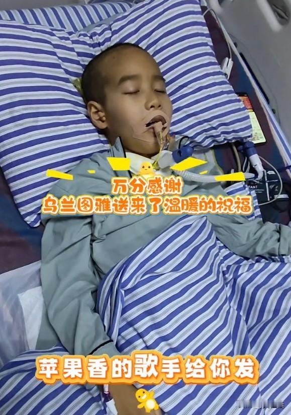 1月26号晚上,刘楚熙又有进步了,现在能很轻松地点头、抬手。可当他用手指了指自己的眼睛时,妈妈心里肯定特别难受,因为孩子的眼睛到现在还没睁开。 刘楚熙真的是个奇迹,昏迷了55天,最后被同学和老师唤醒,现在恢复得也越来越好了。真希望他能早点睁开眼睛,好好看看一直日夜陪着他的妈妈,还有把他唤醒的那些同学和老师。 1月26号晚上,歌手乌兰图雅还特意给刘楚熙发了祝福。妈妈问他,想不想听唱《苹果香》的歌手发来的录音,想听就点点头,刘楚熙马上就轻松点了头,他之前就特别喜欢唱这首歌。乌兰图雅还祝他早日康复,邀请他去科尔沁草原,妈妈又问他想不想去草原,想去就举举手,他也立马抬起了右手。 然后刘楚熙就用右手食指指了指眼睛,妈妈赶紧跟他说眼睛没事的,那一刻,妈妈心里得有多难受。祝愿刘楚熙早日睁开眼睛,早日出院。