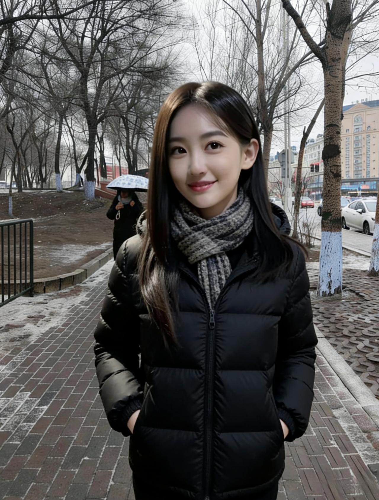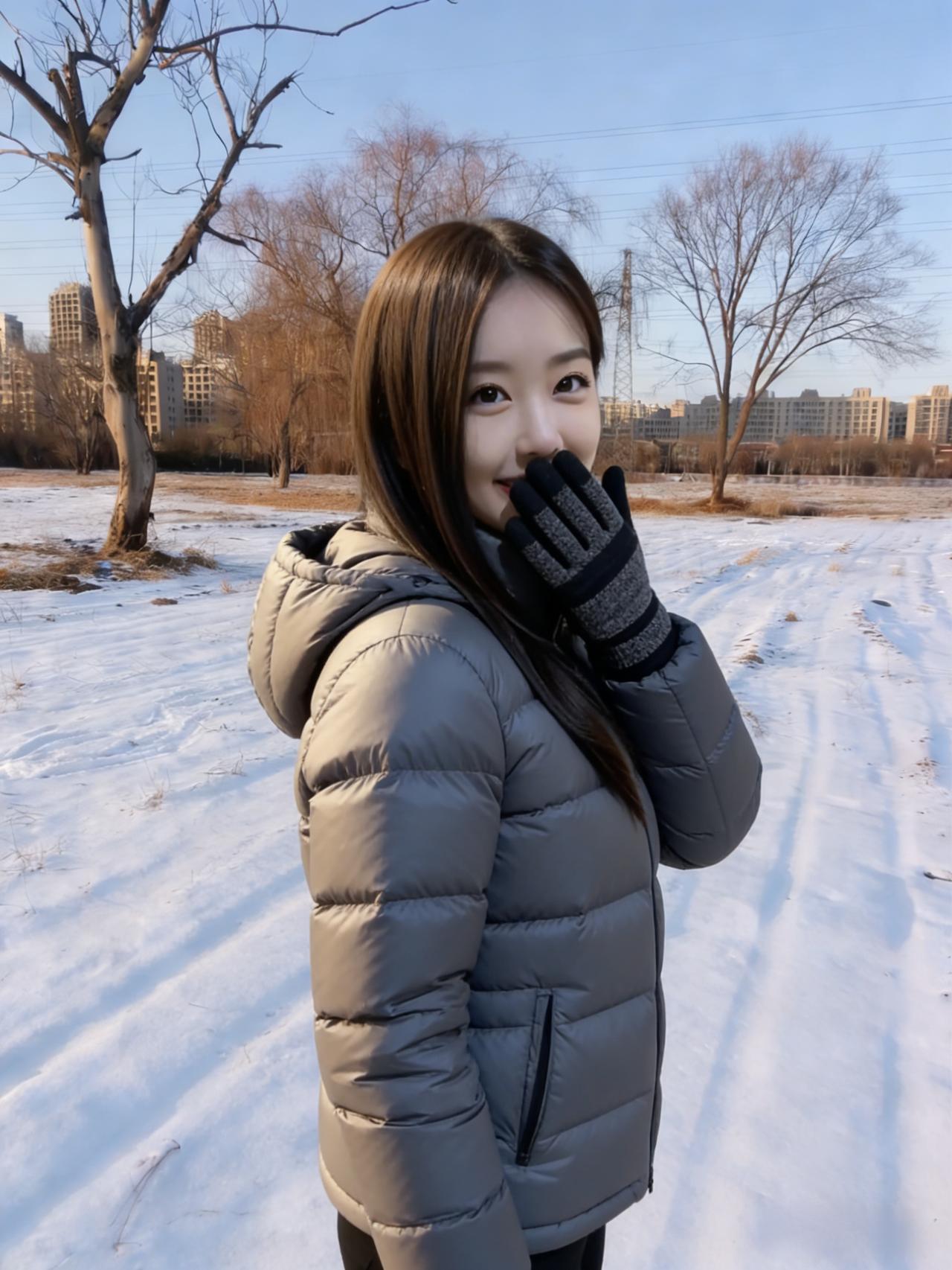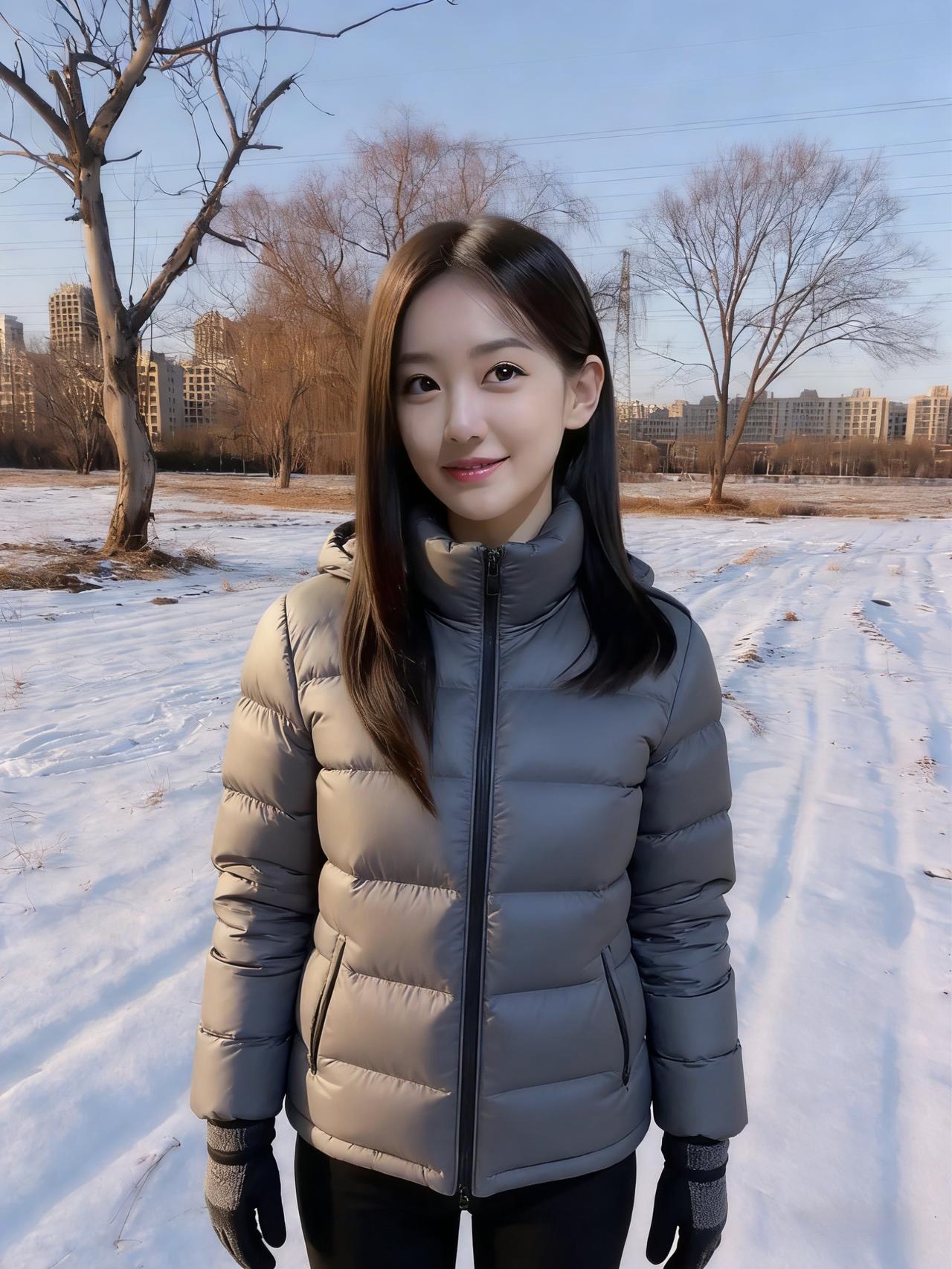 雪粒在睫毛上融化成星子 风穿过大衣绒毛,像旧年的歌 你仰起脸时,阳光撞碎在笑涡里 围巾垂落的弧度,接住了半冬的温柔 ~ 电线杆沉默地丈量天空 枯树把影子织成细密的网 我们站在白与褐的交界 呼吸是云,脚步是雪上的诗行 ~ 每一次抬眼都有飞鸟掠过 每一缕发丝都缠着旷野的风 这不是定格的帧,是日子在发光 是冷冽里藏着的、发烫的心跳 ~ 当你转身,脚印便长出了翅膀 要把此刻的暖,驮向春天的方向