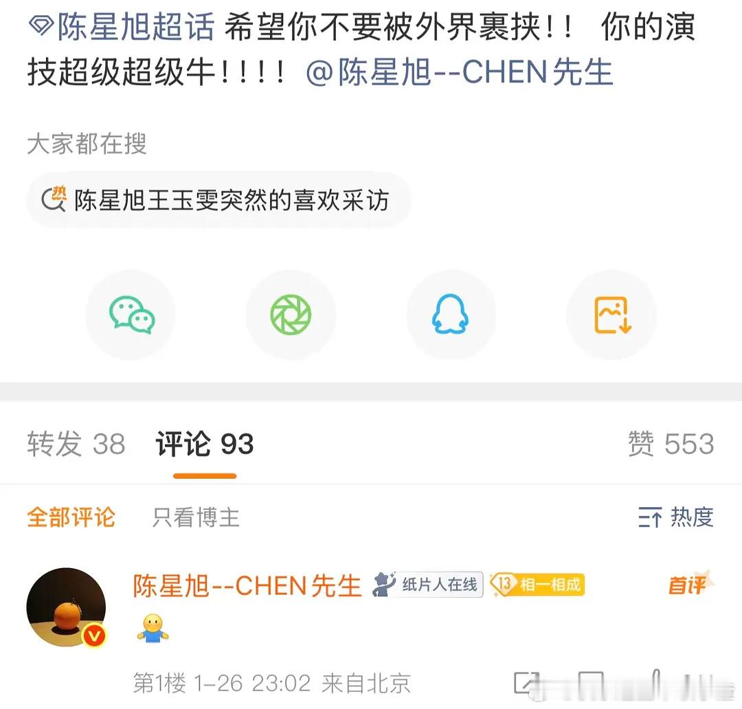 希望你不要被外界裹挟!!你的演技超级超级牛!!!!陈星旭: