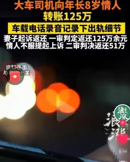 妥妥的被白嫖!内蒙古乌海,一大车司机出车路上寂寞难耐,背着妻子,与年长8岁的女子发展成情人关系,而且长达十几年。妻子偶然通过车载电话听到,他叫对方为“臭老婆”,这才得知被背叛。男子不想让家散了,给妻子写下保证书,承诺和对方一刀两断,回归家庭。但女子一查,竟发现丈夫给对方转账高达125万余元。自己在家省吃俭用,他对其他女人却挥金如土,这口气她咽不下。妻子一怒之下将第三者告上法庭,要求还钱。 大车司机王某1977年出生,2000年就和妻子结婚了。谁能想到,看似普通的婚姻背后,藏着一段持续十几年的婚外情。王某常年在外跑车,或许是因为孤独,他和比自己大8岁的刘某走到了一起。 妻子一直在家安心过日子,照顾家庭,从来没想到丈夫会有二心。直到那次偶然听到车载电话里,丈夫亲热地叫别人“老婆”“臭老婆”,她才如遭雷击,明白了真相。 事情败露后,王某慌了。2024年6月,他亲手写下一份保证书,承认自己出轨十几年对妻子造成了伤害,保证和刘某彻底断绝关系,还承诺以后工资全上交,每笔开销都交代清楚。字迹看起来诚恳,但妻子心里的刺已经扎下了。 从2016年到2024年,王某给刘某的净转账金额高达125万多,王某每年收入大概15到20万元,这些钱不仅是家里积蓄,还包括借来的钱和卖房款。妻子在家精打细算,丈夫却对情人如此大方,甚至在情人节、5月20日这种特殊日子,转账“52”、“520”这种有暧昧意味的数字。 妻子拿着保证书、通话录音和转账记录,把刘某告上法庭。法院审理时,这些证据形成完整链条,证明王某在婚姻期间擅自处理夫妻共同财产,且行为违背公序良俗。一审判决刘某全额返还125万余元。 刘某不服上诉,称其中74万多是信用卡套现后循环的资金。二审法院仔细核查资金流向,确认了这一部分,但剩下的51万4千余元,确实是王某用夫妻共同财产赠与的。最终法院判决,刘某需要返还这51万余元及利息。 有人说跑大车辛苦,需要情感寄托。但再难,也不能越过道德和法律的底线。夫妻共同财产不是个人的“零花钱”,擅自处置不仅伤害家庭,法律也不保护。 这场持续十几年的纠纷落下帷幕,法律为妻子追回部分财产,但被背叛的信任和受伤的情感,修补起来需要更多时间。婚姻的本质是责任和坚守。 各位读者你们怎么看?欢迎在评论区讨论。 婚内婚外情