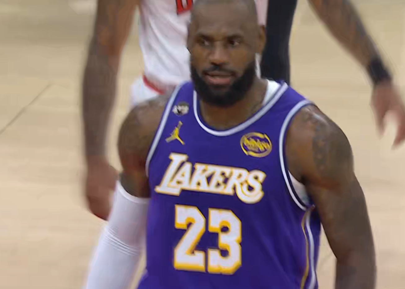 老詹在这块熟悉的球场梦回当年,已经得到了本赛季上半场新高的20分...