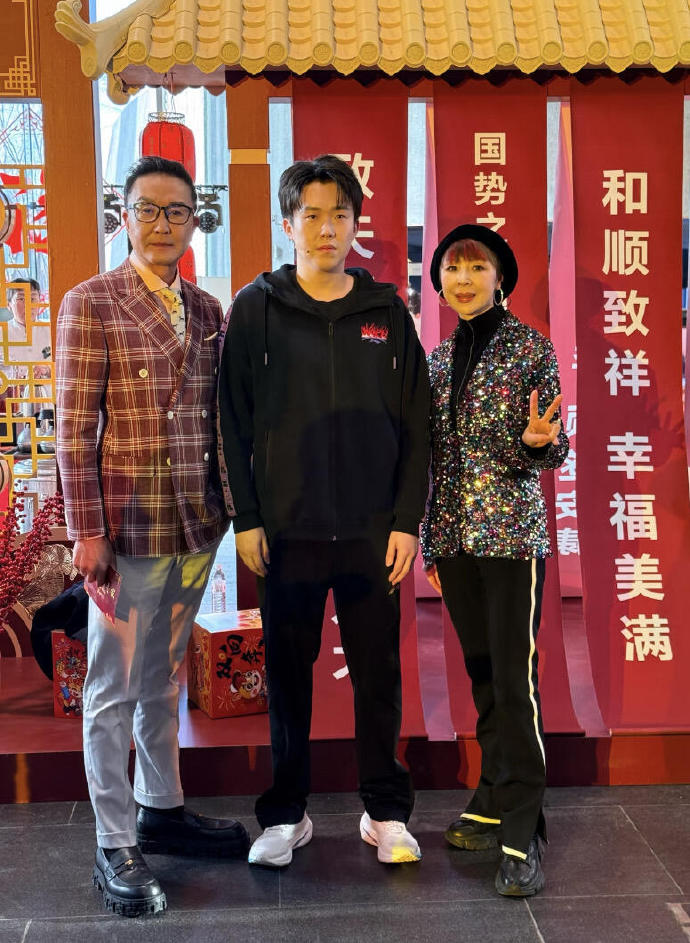 王楚钦首都院士新春联谊会后台和吴刚岳秀清夫妇合影