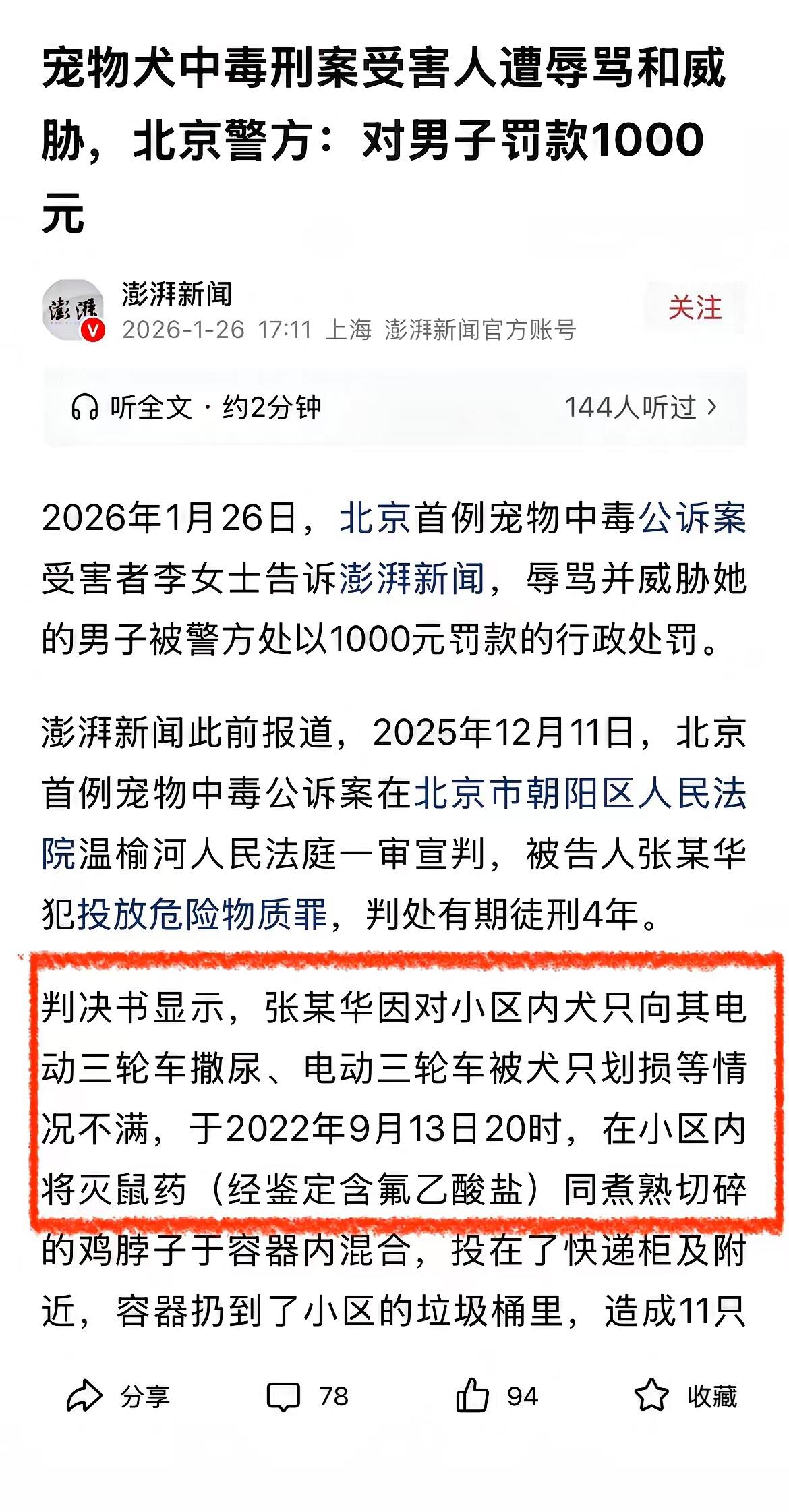 毒狗案判决书一出,真是让人五味杂陈! 就因为小区狗乱撒尿,就有人下毒,这逻辑听着就离谱!毒狗人倒成了 “背锅侠”,承担了不文明养狗的恶果。 反观那些放纵狗随地小便、不戴嘴套的狗主,却啥事没有,商场里还满是赞美女狗主的海报,这世道! 女狗主能赢官司,还不是钻了“投毒”定义的法律空子。 可大众更关心的是,赢了官司,小区狗患改善了吗? 没养狗的群体,难道就只能默默忍受,人迁就狗? 这显然不合理! 你觉得没养狗的人该怎么维护自己的权益?