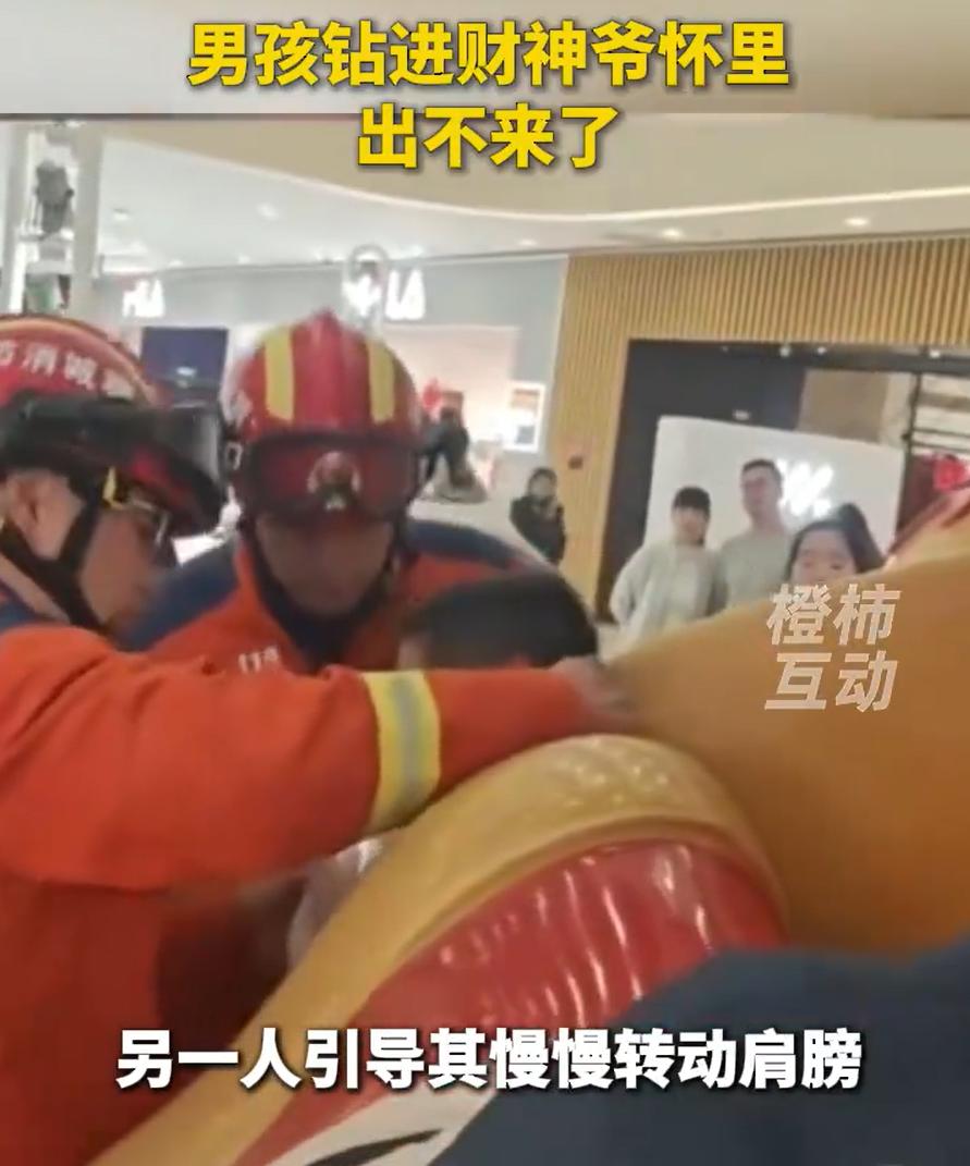 浙江义乌,家长带着孩子去商场游玩,男孩看到商场的“财神爷”雕像有趣,就把身体钻了进去,万万没想到,进去容易,出来却很难,家长用尽各种方法无果后,只能淡定地拍照发朋友圈,然后向消防求助 视频中,商场有一个很大的财神爷雕像,其中雕像的手有一个缝隙,对于大人来说很小,但对于小孩子来说却刚刚好,孩子顽皮,就从下面钻了进去,结果发现出不来后,当场就急哭了 家长发现后,想了很多办法,试了各种角度都不行,也用了护手霜做润滑,但都没能成功,最终只能找消防员 消防来得快,办法也稳。一个队员从外面托住孩子调整重心,另一个在旁引导孩子慢慢转动肩膀。不到一分钟,人出来了,孩子没事,一场虚惊 有网友调侃说:想不发财都难,财神捉住都不放手 也有网友好奇:为什么进去那么轻松,但出来那么难? 其实这和我们的身体结构有关。往里钻的时候,孩子可以缩紧肩膀,头先过去,身体顺势跟进。可出来时,肩膀已经撑开,卡在固定的宽度里,反向移动就特别难。加上孩子一慌,肌肉紧张,就更不容易脱身 当然,好笑归好笑,但这个事也给很多家长一个提醒,小孩子对孔洞、缝隙有天生的好奇,他们眼里的“好玩”,往往藏着我们大人容易忽略的风险。商场里的装饰雕塑、栏杆间隙、旋转门缝隙,都可能成为意外的发生地