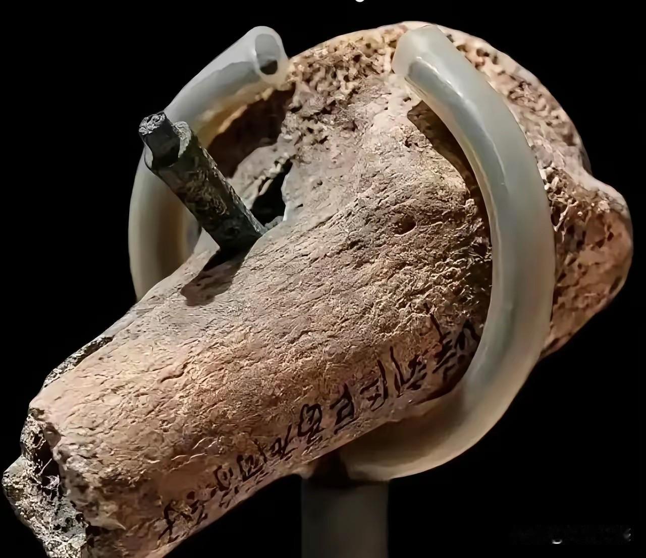 这骨头是战国时期的人骨,距今已经2400年了,在这块骨头上,有一个箭头深深的插在里面,目测这个箭头,感觉像是青铜做成的,古代的弓箭威力也太大了,居然能够射进骨头里,由此不难想到,传说中,李广射虎把箭头射进了石头里,可能是真实的,平明寻白羽,没在石棱中,这样的事情真有可能发生!