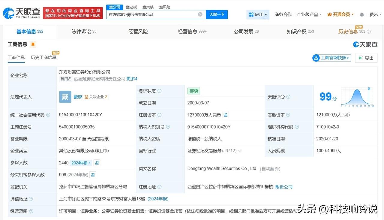 【东方财富证券增资至127亿】 天眼查App显示,近日,东方财富证券股份有限公司发生工商变更,注册资本由121亿人民币增至127亿人民币,增幅约5%,同时,多位高管发生变更。 该公司成立于2000年3月,法定代表人为戴彦,经营范围为证券业务、公募证券投资基金销售、证券投资基金托管,由东方财富(300059)、上海东方财富证券投资咨询有限公司共同持股。 天眼查信息: