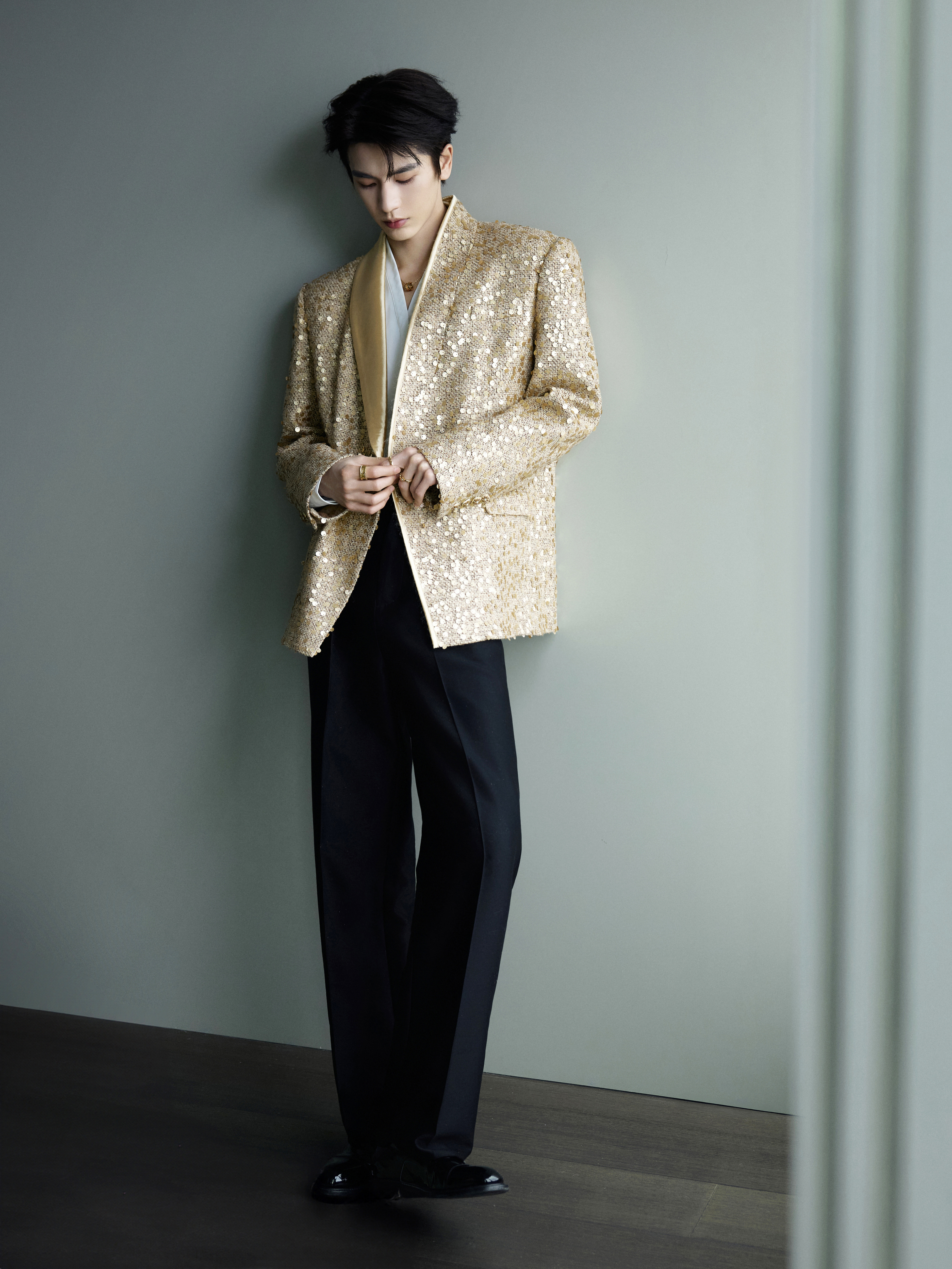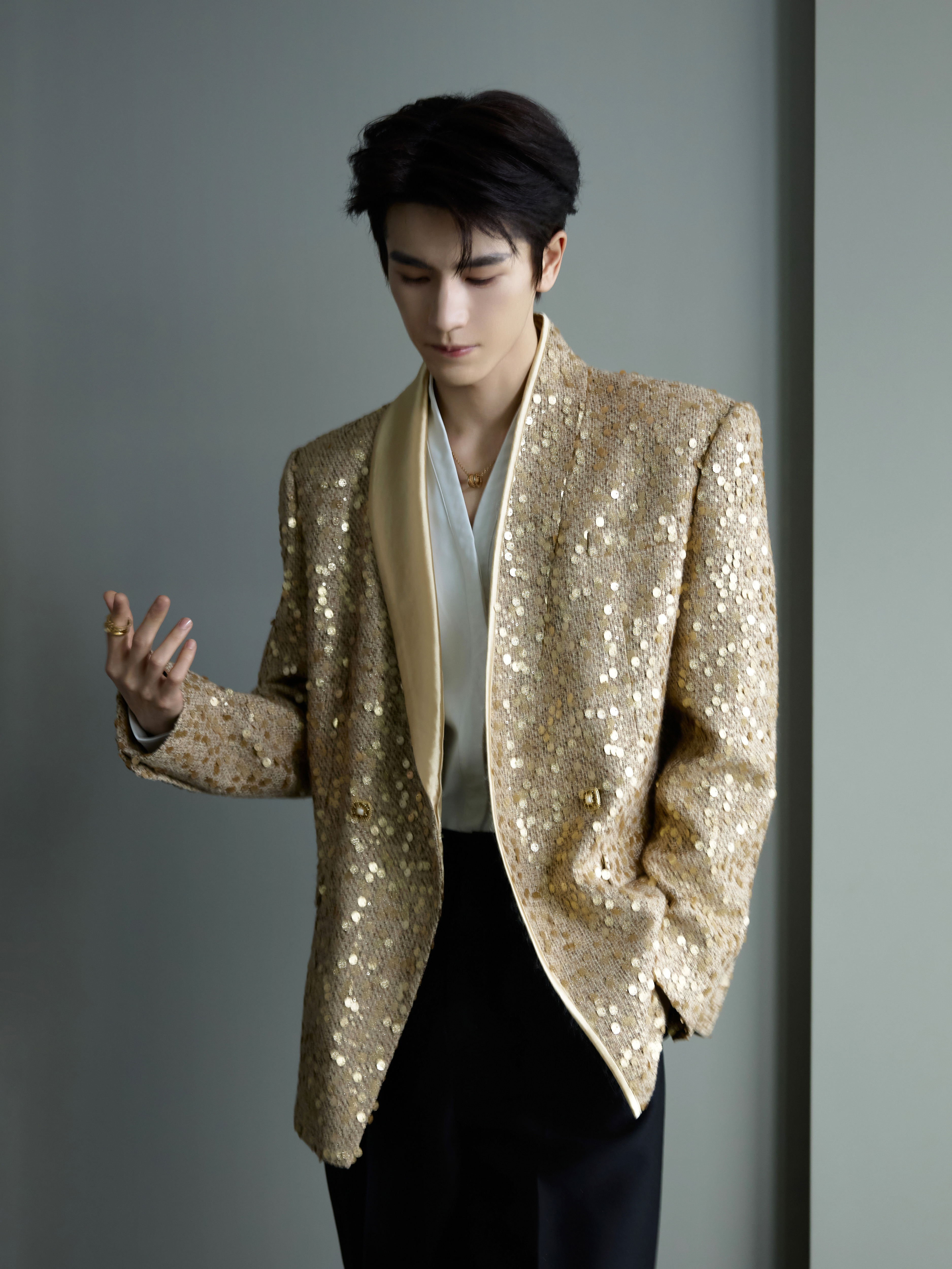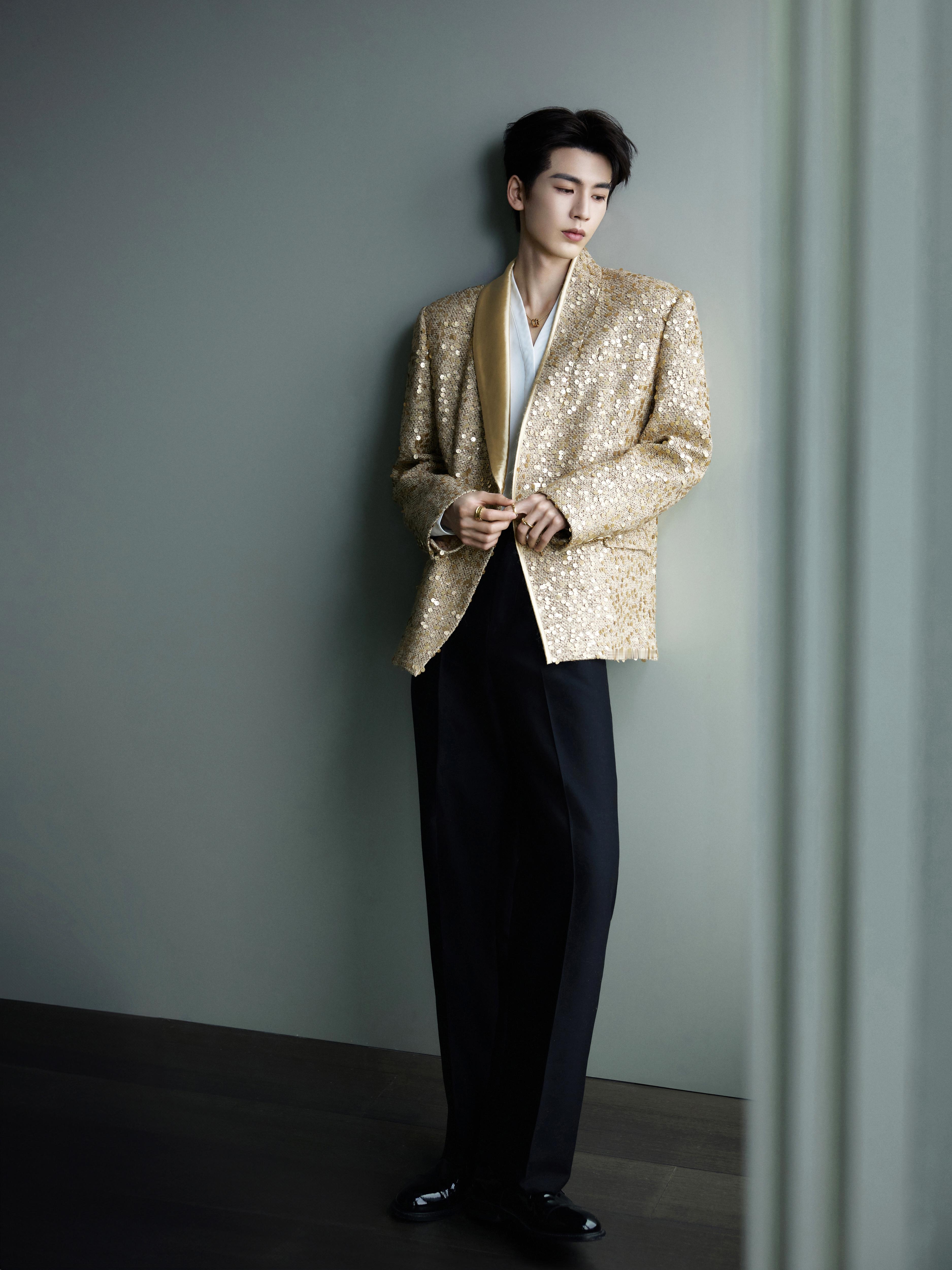 张凌赫 × 今日品牌线下活动造型大片, 一袭金色亮片西服套装搭配 BVLGARI 珠宝出镜,状态超好,迷人闪耀的贵公子依旧很权威✨张凌赫苏州线下活动