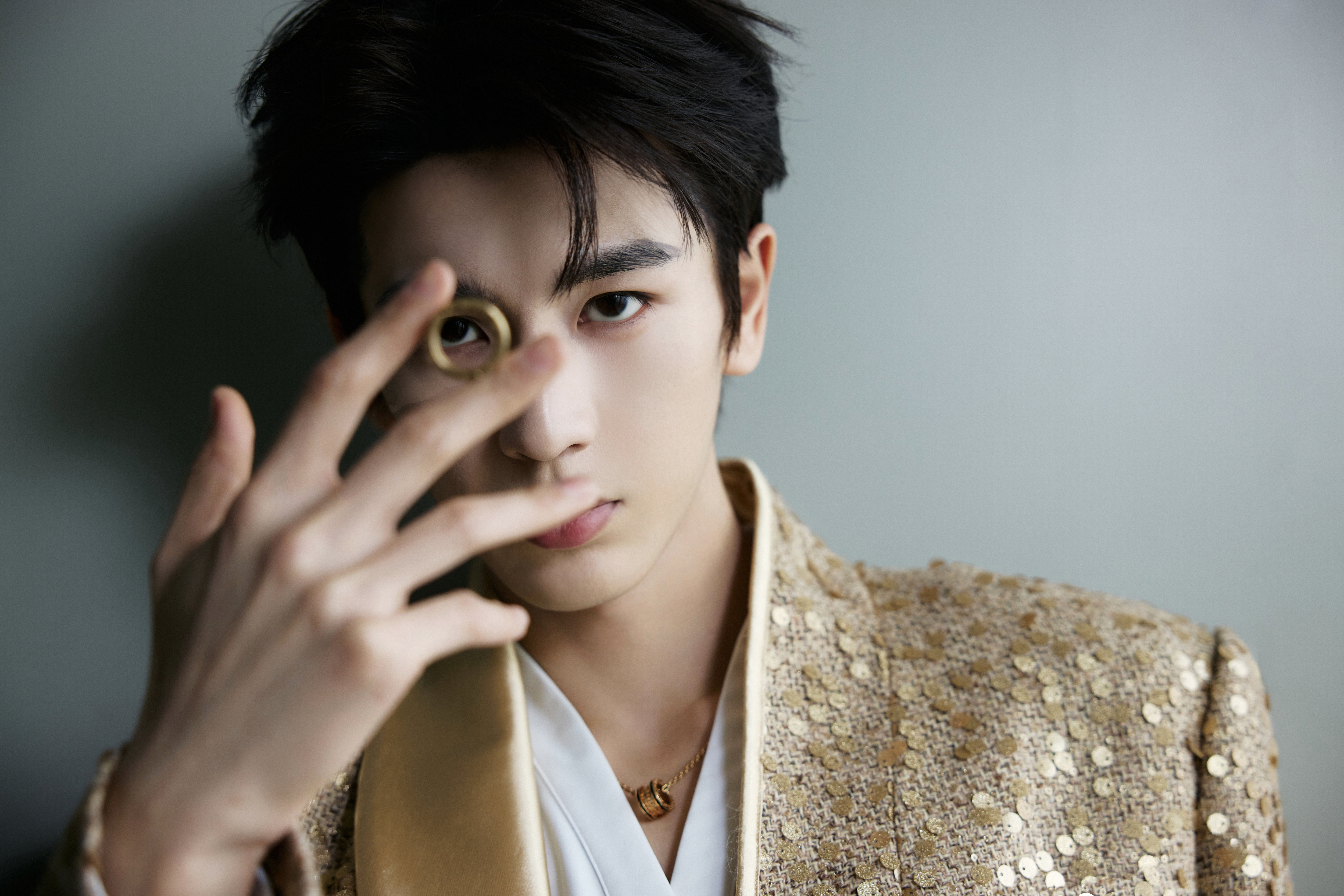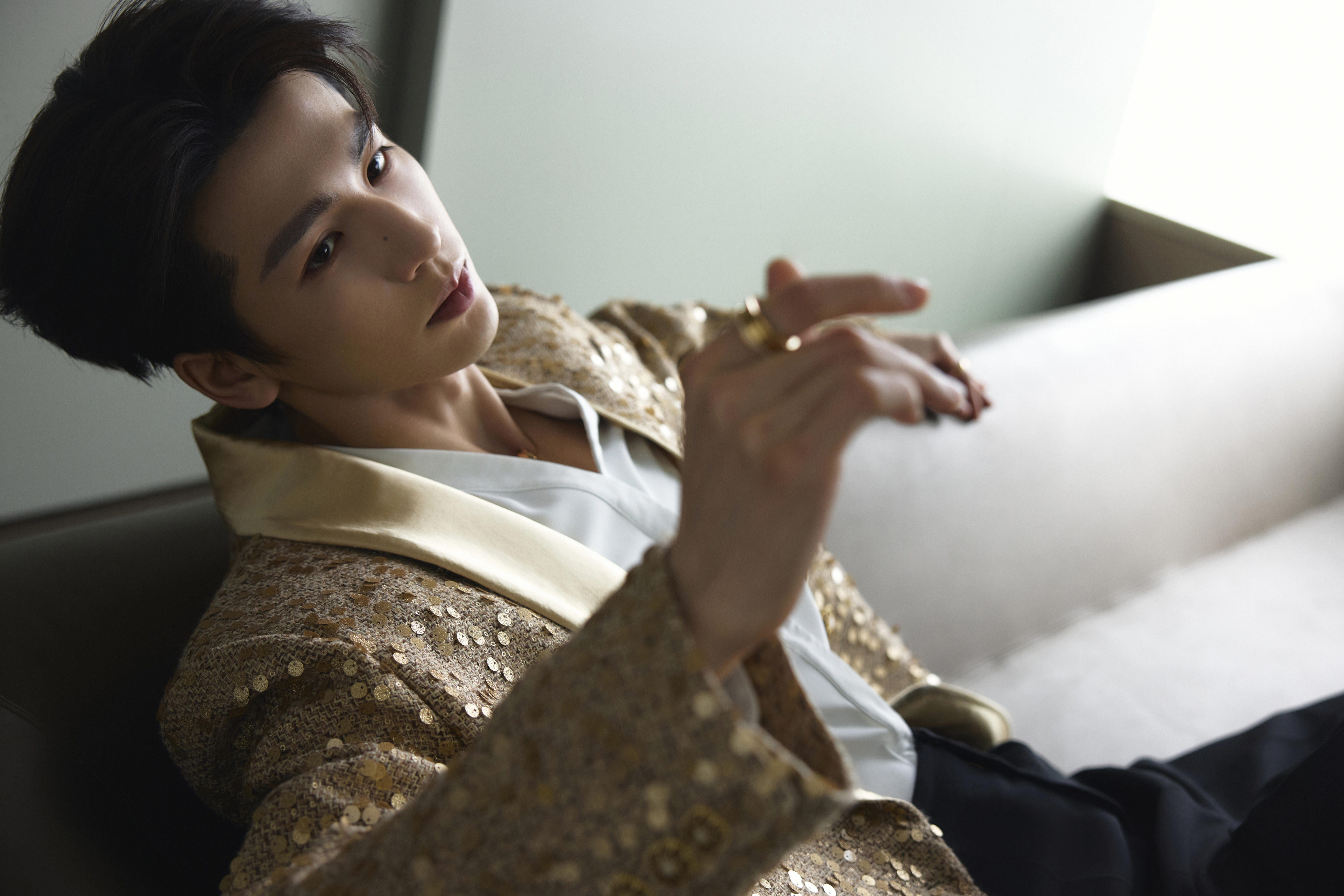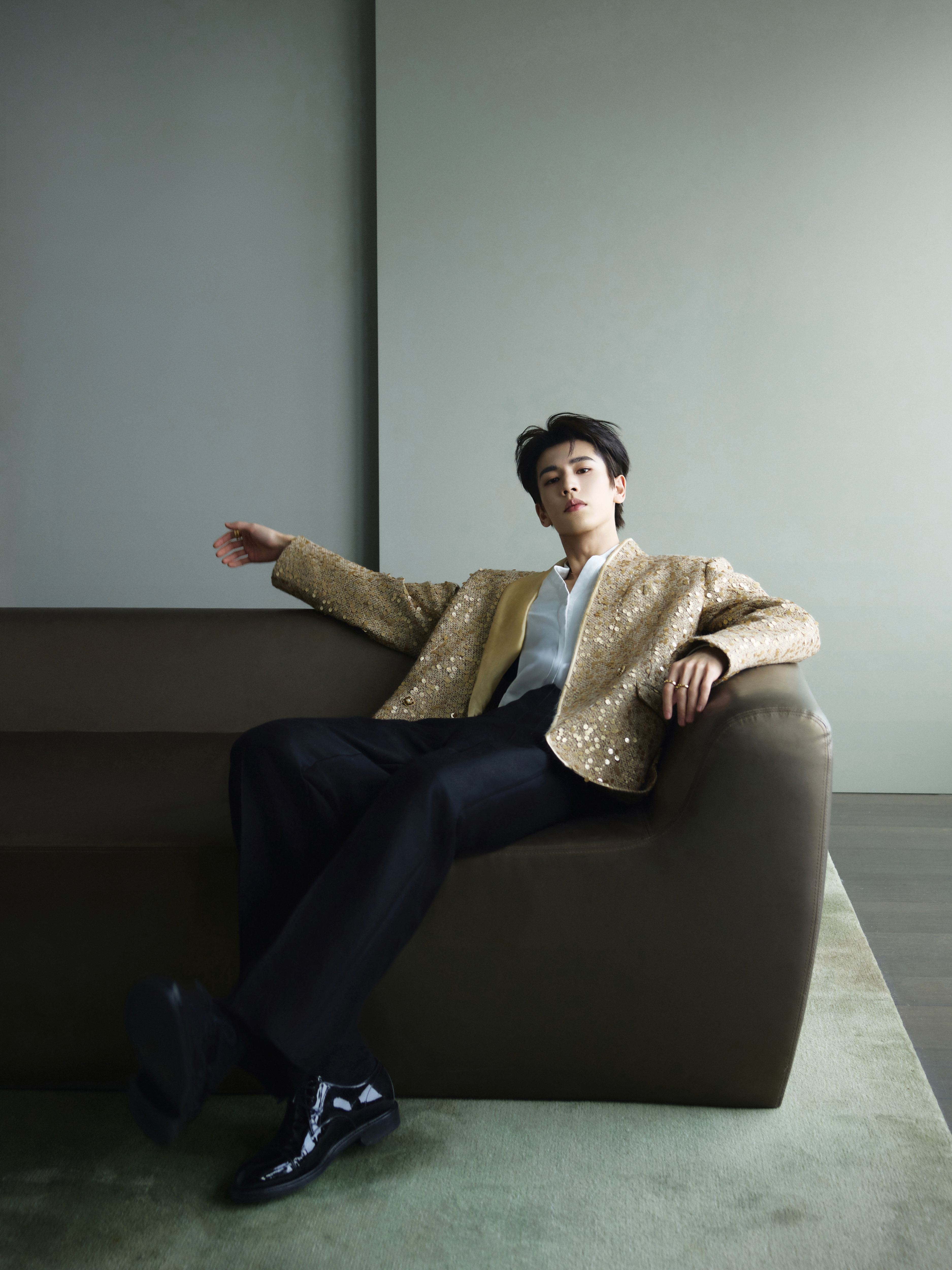 张凌赫 × 今日品牌线下活动造型大片, 一袭金色亮片西服套装搭配 BVLGARI 珠宝出镜,状态超好,迷人闪耀的贵公子依旧很权威✨张凌赫苏州线下活动