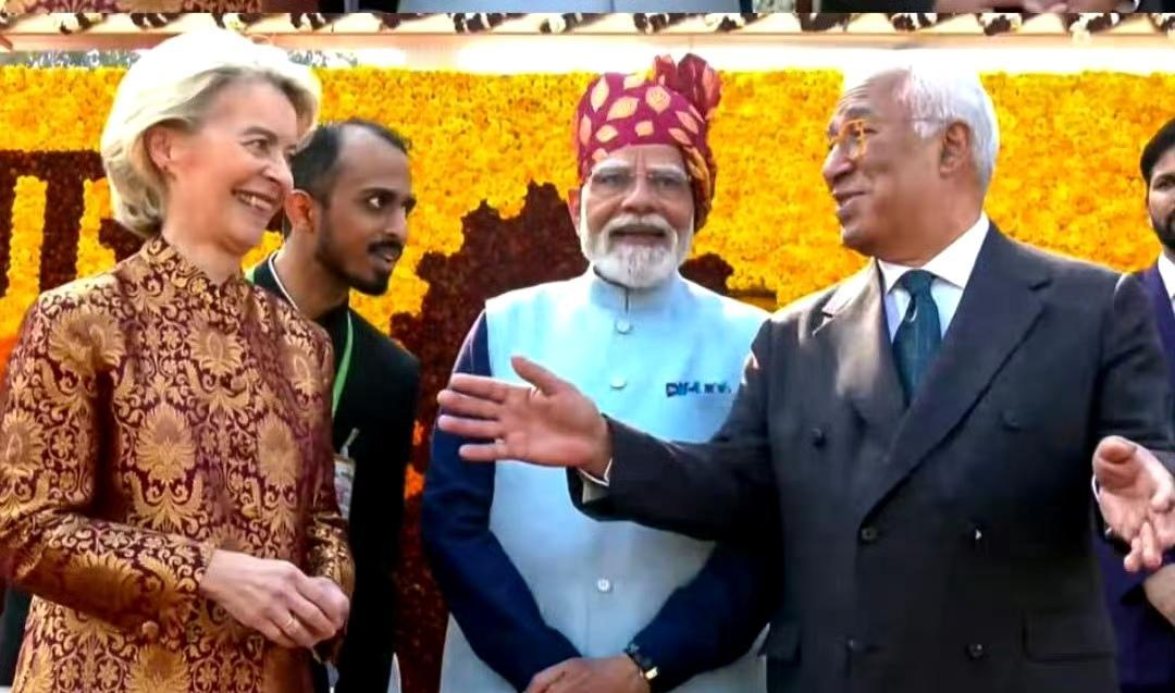 印度共和日阅兵,冯德莱恩和科斯塔是主宾。 现在欧盟得不到美国投喂,和中国合作又不安心,只能找上印度这个香饽饽。这不最近接连宣布和印度签署这个那个协议,还劝印度只要摆脱对俄罗斯的依赖,前途会和欧盟一样光明。