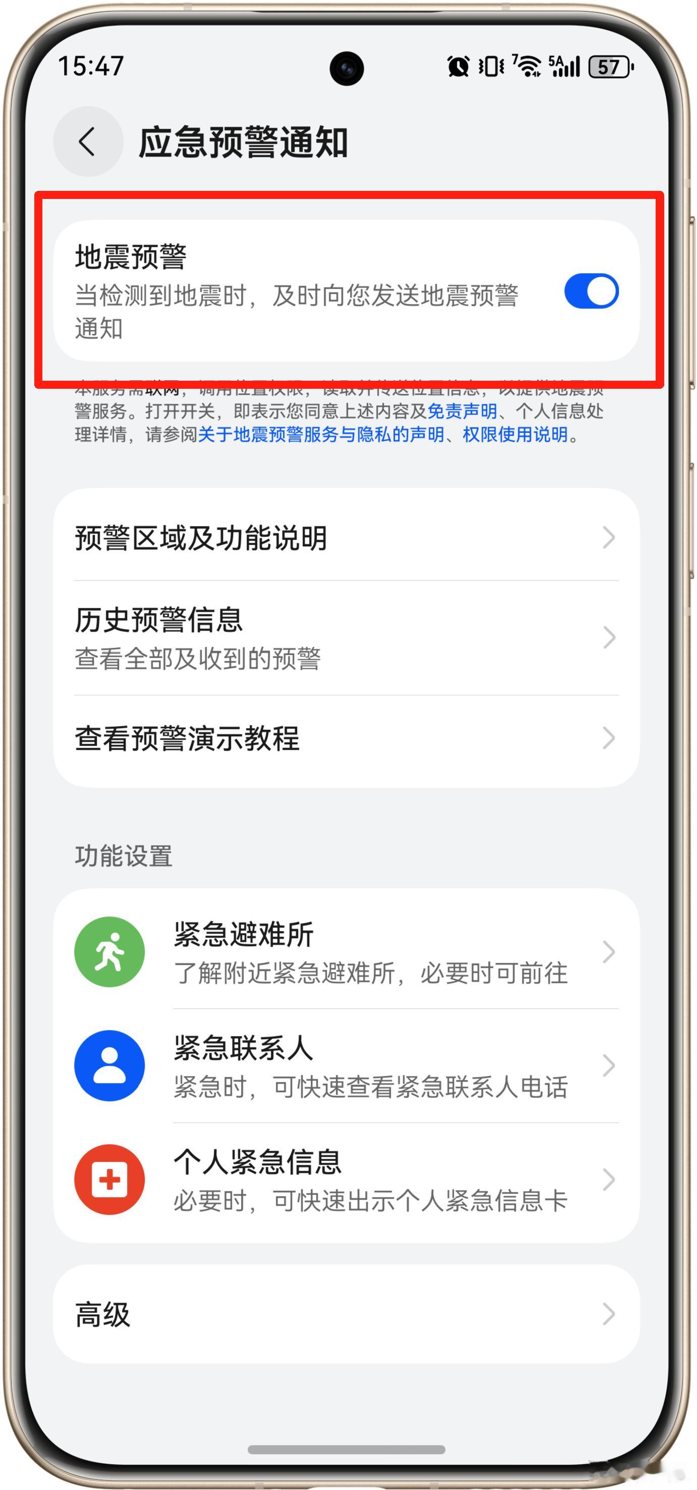 地震预警功能我建议大家都要及时开启华为打开地震预警就在设置——系统——应急预警通知,打开地震预警开关就可以了关键的时候还是华为靠谱!3步开启华为手机地震预警如何开启手机地震预警功能
