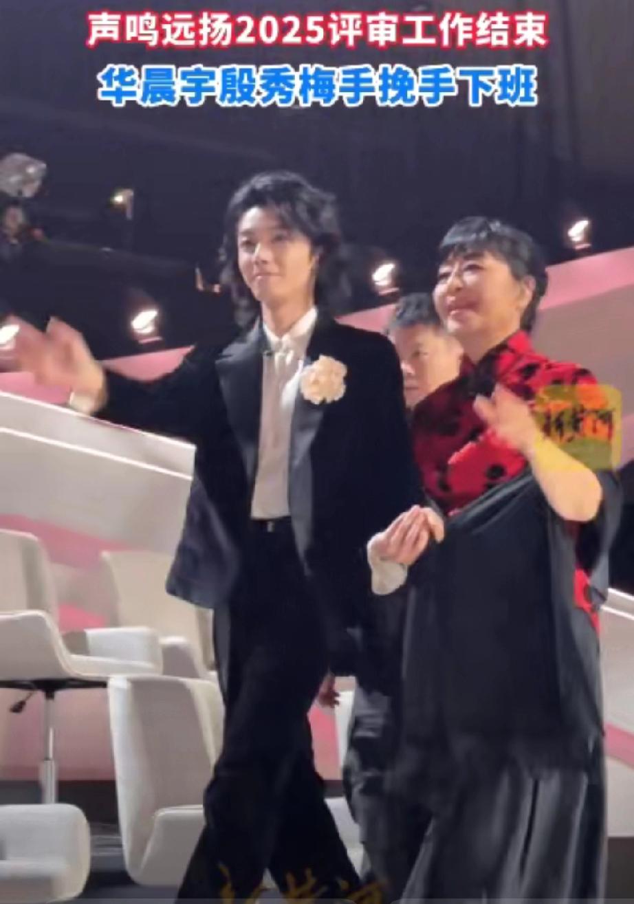 家人们谁懂啊!刷到华晨宇和殷秀梅手挽手下班的路透,直接被这反差感拿捏! 69岁的“国家队歌唱家”殷秀梅主动挽上34岁乐坛“先锋顶流”华晨宇的胳膊,两人一路热聊,笑容根本藏不住,华晨宇还贴心放慢脚步配合前辈,细节里全是尊重。 舞台上,一个坚守传统美声,一个玩转创新改编,风格大相径庭;私下却成了惺惺相惜的忘年交。节目里殷秀梅口误喊他“快乐男声”,他也笑着不计较。 没有刻意摆拍,毫无距离感,这双向尊重的娱乐圈神仙友谊,狠狠羡慕了! 华晨宇香港造型 华晨宇唱法