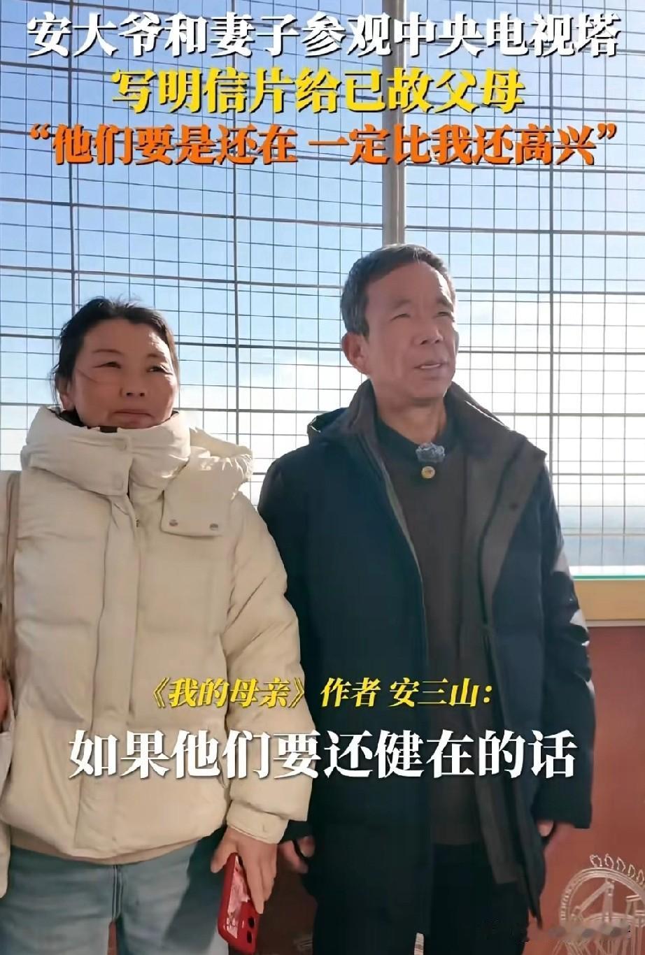 再次刷到安大叔,大叔被央视邀请去看了春节晚会的彩排,他带着妻子一起,看了央视大楼,去了北京的故宫。突然懂得了文字的魅力,他甚至帮大叔改变了命运。 大叔的一篇《我的母亲》直接封神,之后又写了我的父亲,同样让人感动。有网友说看了大叔的文章,才知道原来白描的写法这么打动人。其实这也是大叔对父母的那份朴素的思念打动了你我。 他笔下的父母,就是中国最普通的老百姓形象。我们从大叔父母身上多多少少可以看到我们自己父辈,甚至爷爷辈的影子。所以虽然写的是大叔的父母,多少人又想到了自己的父母或是爷爷奶奶。 看着安大叔的生活越来越好,我也是由衷的高兴。我想如果大叔的父母能够想到他们离开之后还能帮到儿子,也会含笑九泉了。