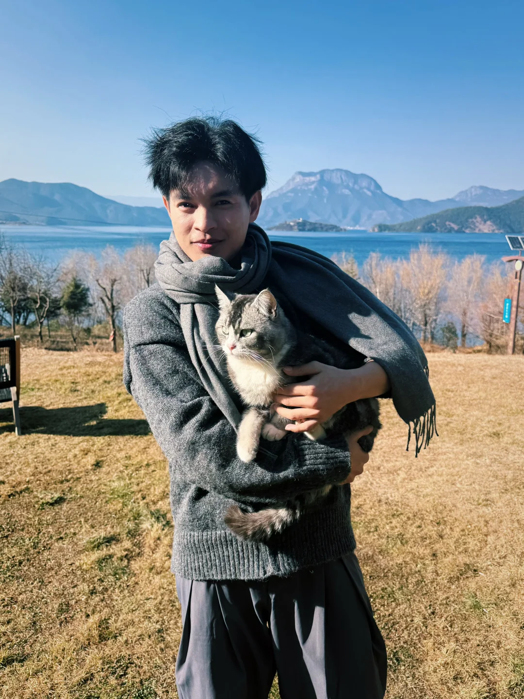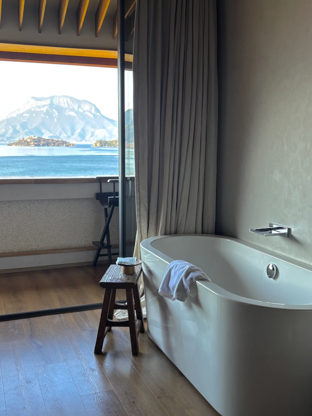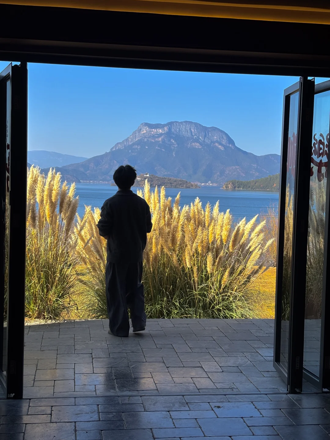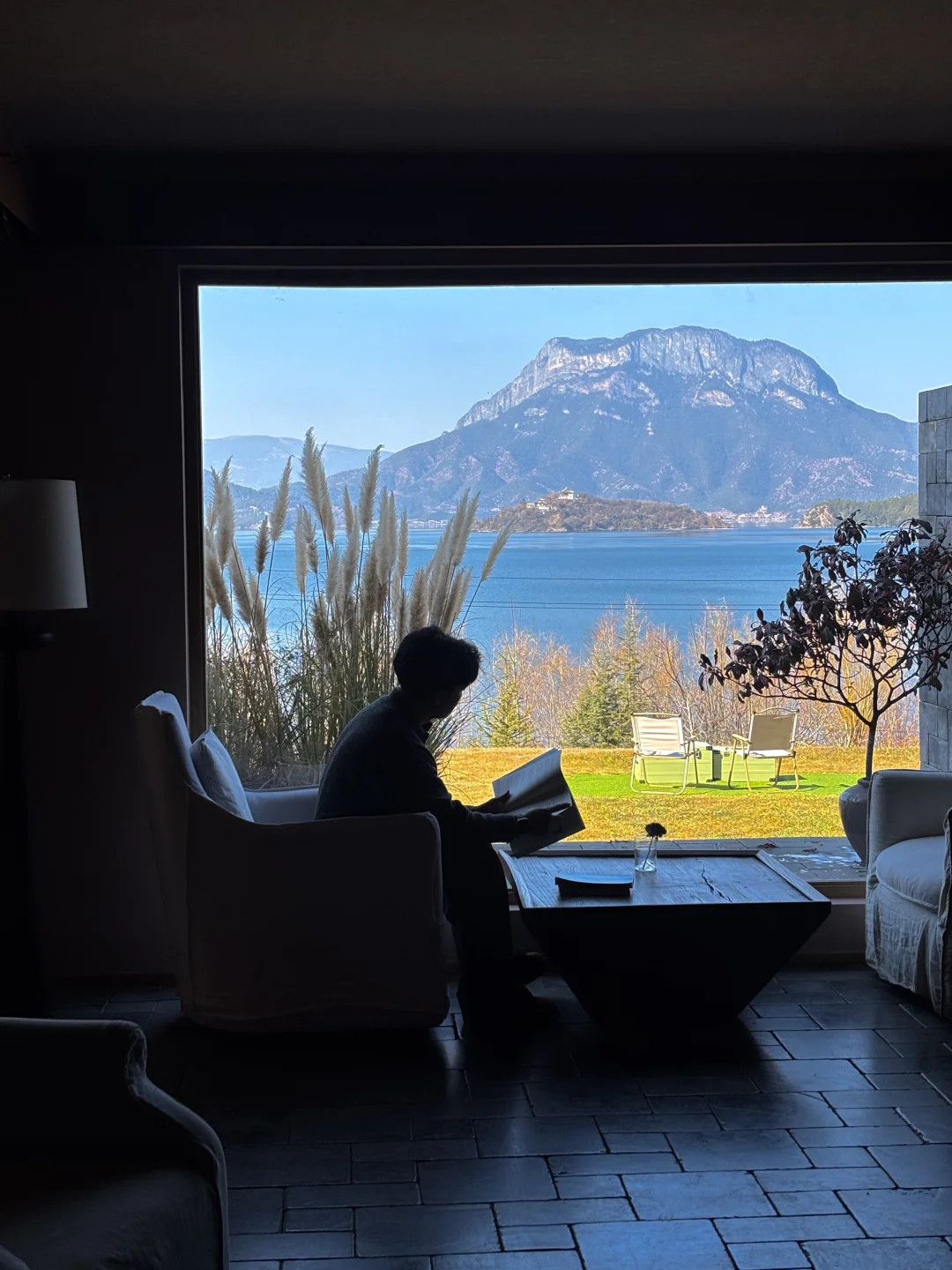 大堂有整面玻璃窗直面泸沽湖与格姆女神山,下午我都在酒店发呆,撸猫、看书、喝下午茶,挺惬意的。