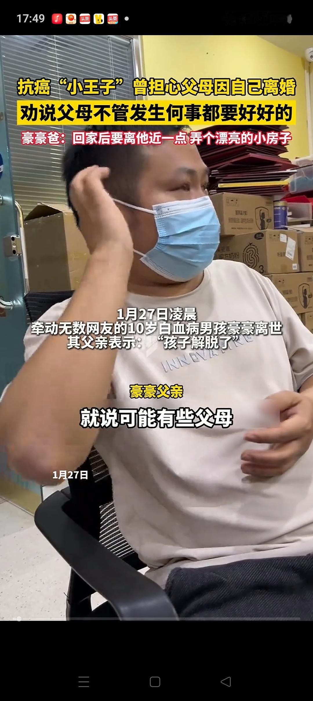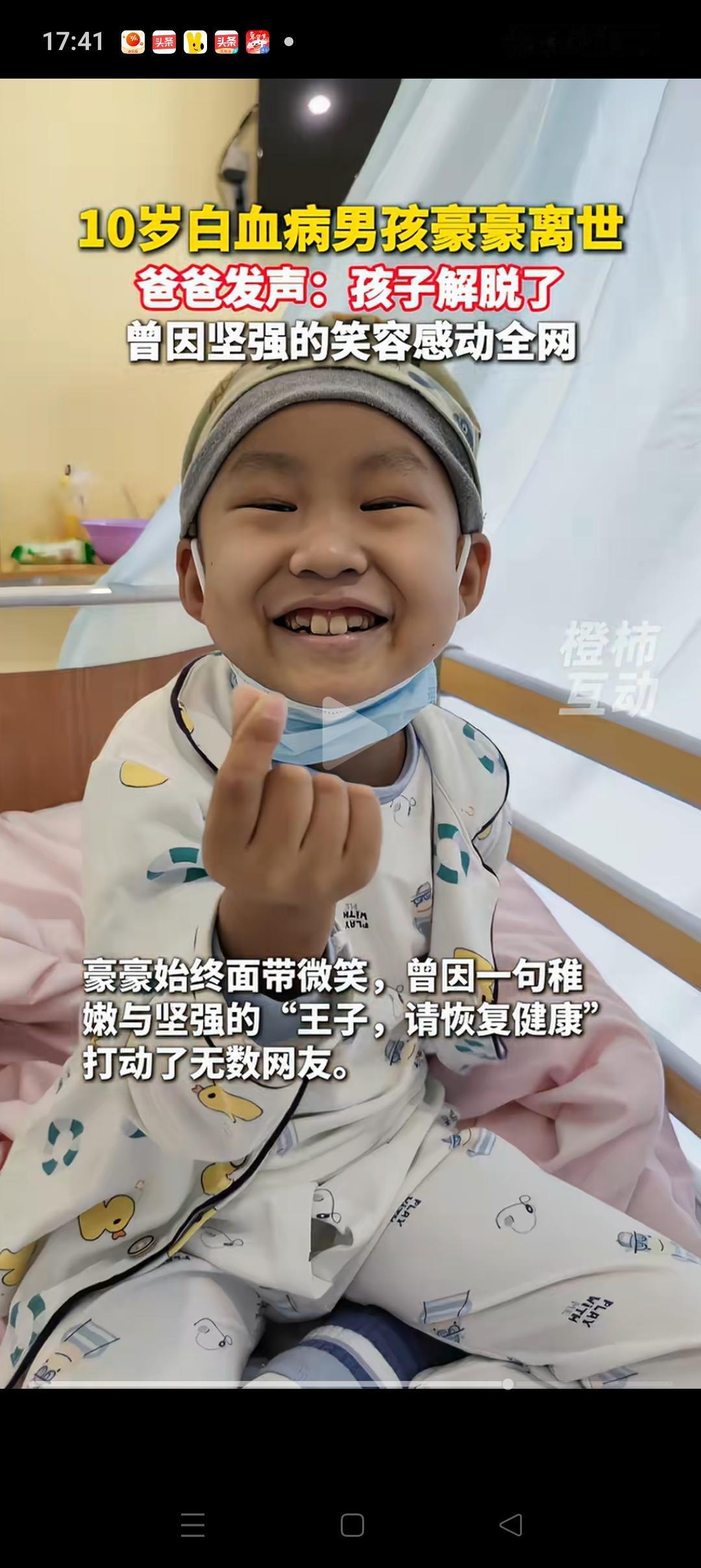 豪豪可能对自己的死亡也有预感,就在前段时间,他对爸爸妈妈说:等我走后,你们都要好好的,不要吵架,不要离婚,也不要伤心。[流泪][流泪] 至于最近为什么大家都没有刷到豪豪的视频,他的爸爸说:我特意把他的账号给拉黑了。因为豪豪一直给人的印象是乐观开朗,我不想让大家看到不好的一面。 豪豪爸爸还说:接下来会带孩子回老家,因为他特意叮嘱过,要把他埋在老家,把房子(墓地)修的漂漂亮亮的。 可惜的是豪豪在最后一刻并没有留下遗言。因为虽然他很想说话,但是妈妈听了半天,也听不清楚他到底说了什么。只是隐隐约约听到了“难受”二个字。 豪豪一定是上天派来的天使,现在也只是回天上继续做回那个无忧无虑小天使吧[祈祷][祈祷]