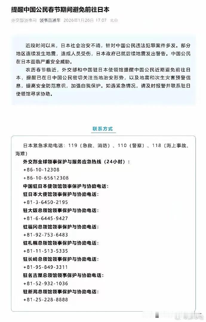 千万不要去日本! 国家已经多次提出来,让大家注意这个风险,既然多次提出来,肯定背后有情况。 但是,一些国人就是不听使唤!万一在日本遇到不测或回不来,可不要到时候哭爹喊娘,可不要抱怨祖国不管你。 中国向来讲话含蓄,国家一而再再而三的这样讲,说明一定是有什么问题的,还是多点心吧!