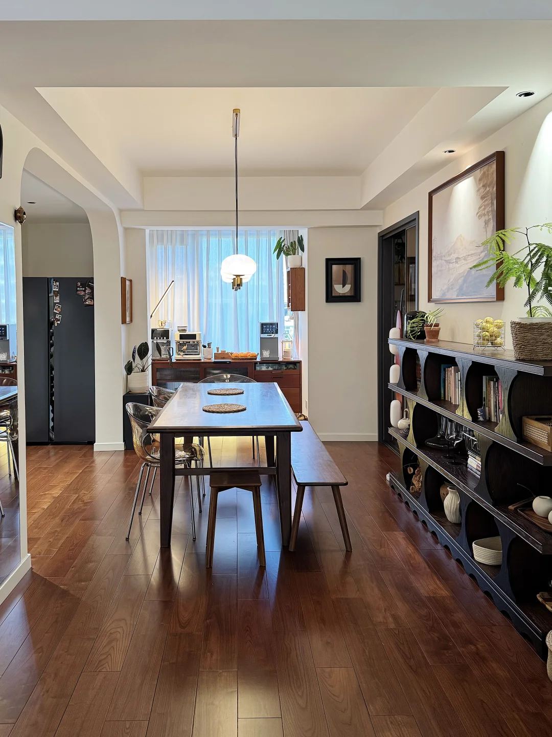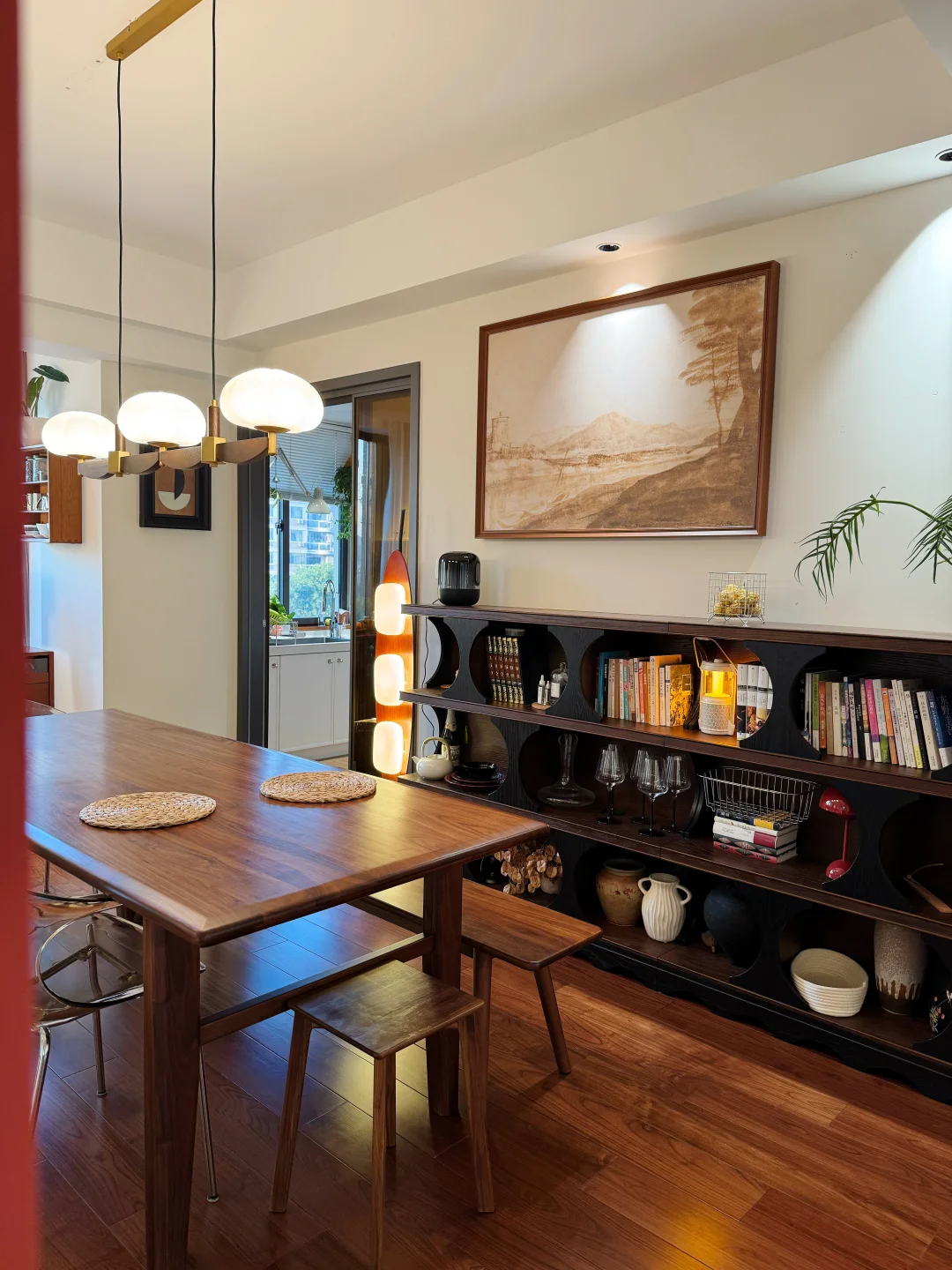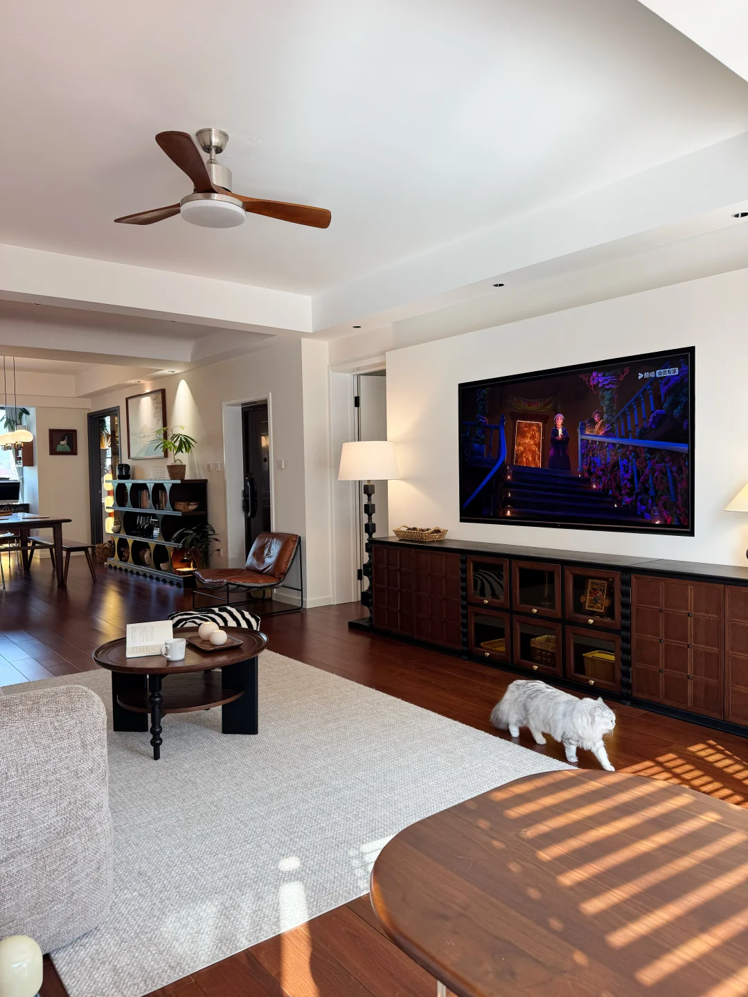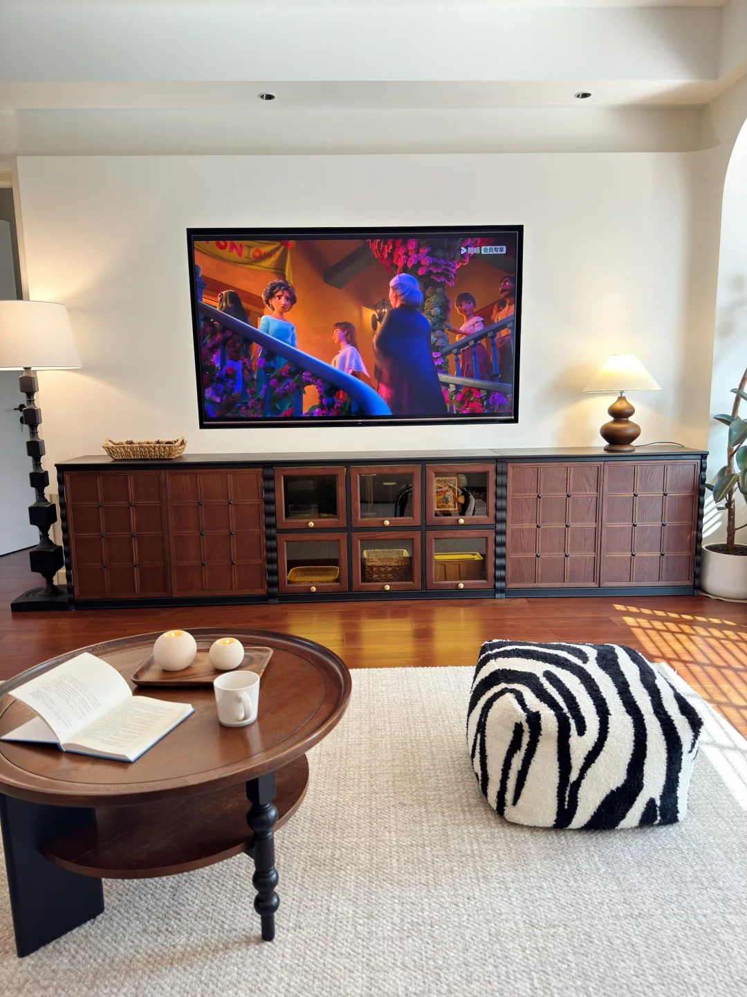 入住了胡桃木轻复古小家两年多啦! 当初放弃网红风,选了温润的黑胡桃木+低饱和奶油调,全屋没有花里胡哨的装饰,却越住越舒服,朋友来都问爆链接~ ✅ 核心干货(抄作业直接码) ▫️墙面色号:珍珠白(通刷,暖白不发黄,衬胡桃木超温柔) ▫️木色比例:家具30%黑胡桃木+20%藤编,剩下留白,不闷不压抑 ▫️灯光公式:主灯(4000K)+射灯(7W 3500K 36°)+落地灯(局部补光),氛围感全靠分层光 ▫️软装关键词:黄铜五金+亚麻窗帘+复古藤编摆件,低成本提质感 住进去才发现,好的装修从不是照搬,而是把喜欢的元素揉进日常~