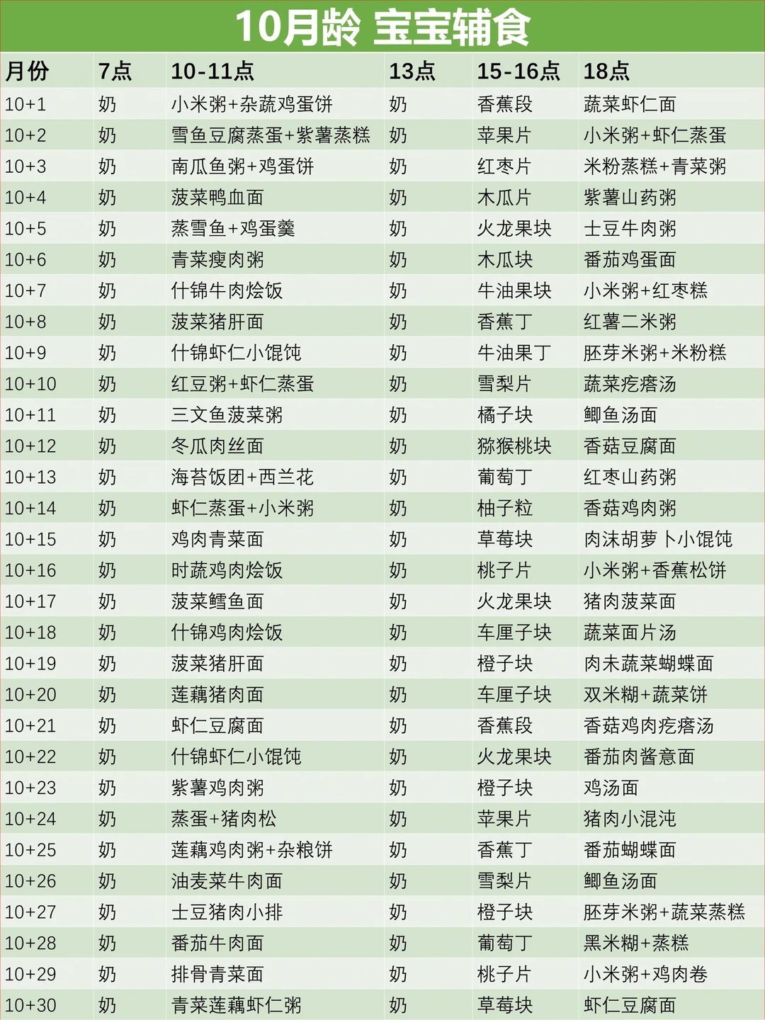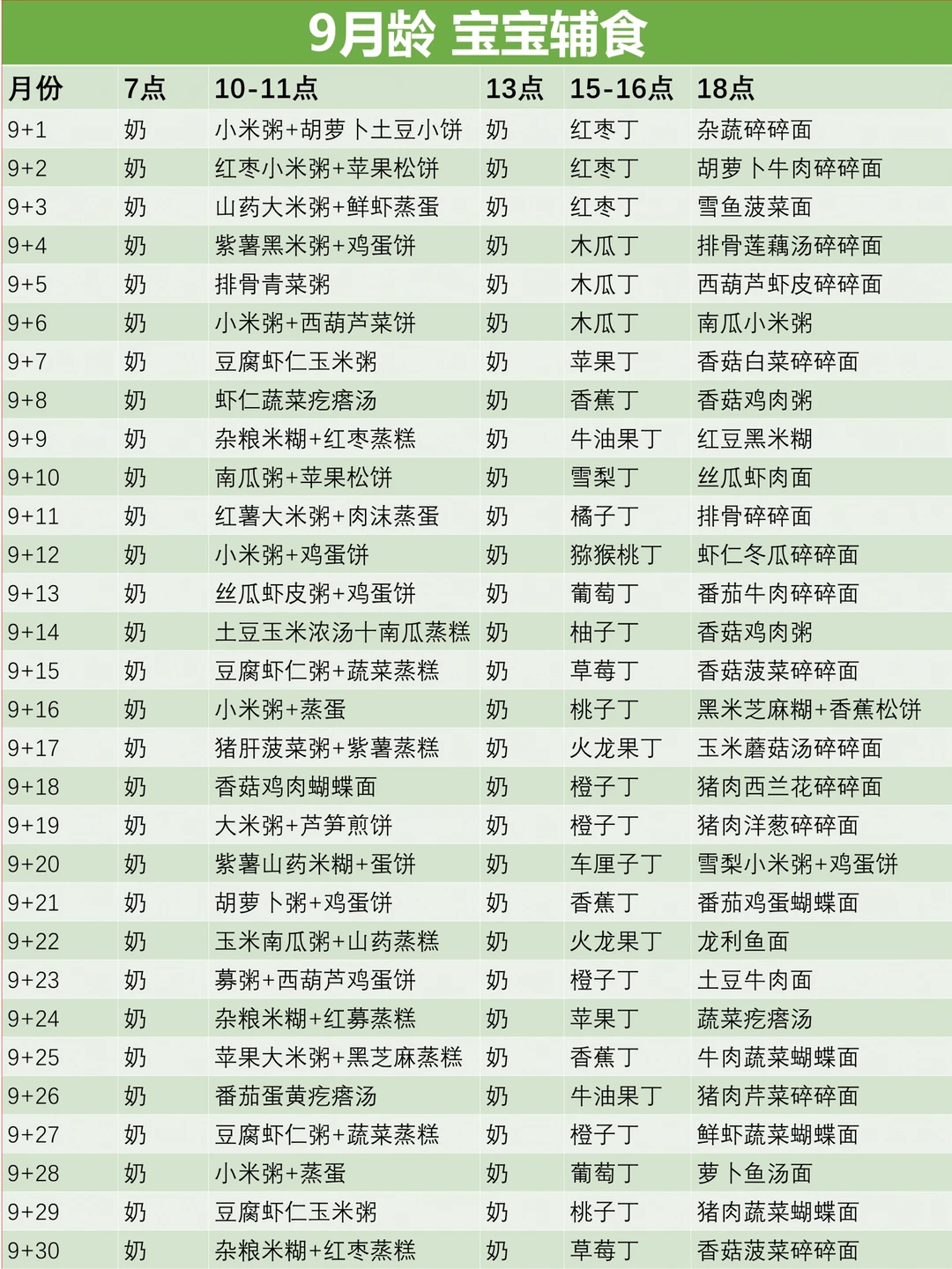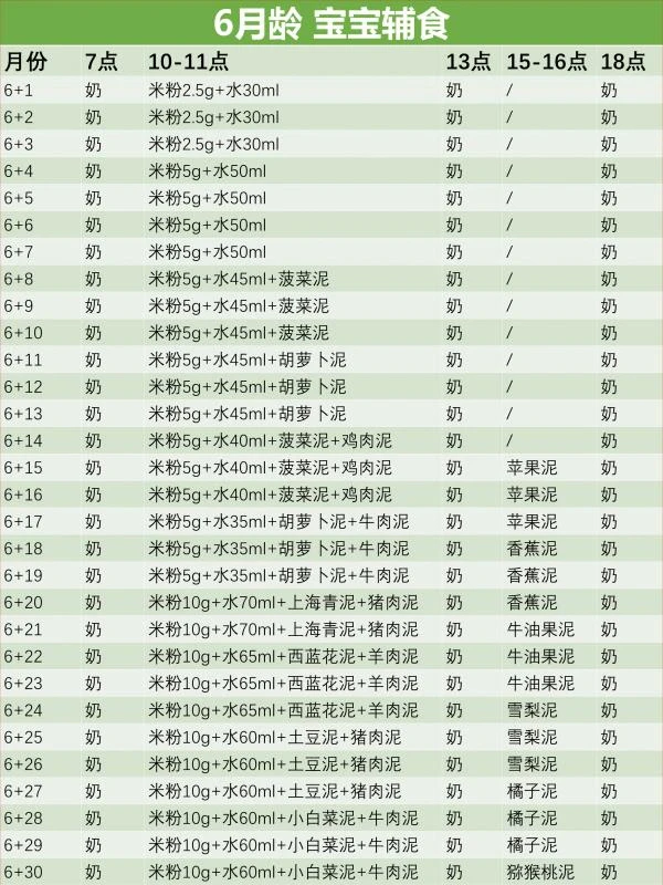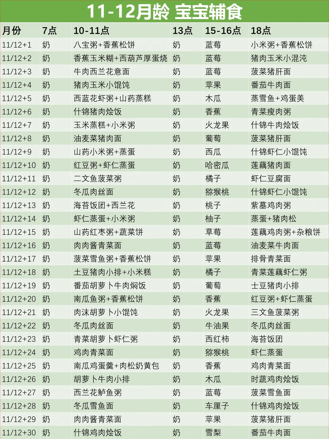 宝宝辅食让很多新手爸妈很头疼,今天整理了6-12月龄辅食搭配,不一定照搬,但可以做参考。