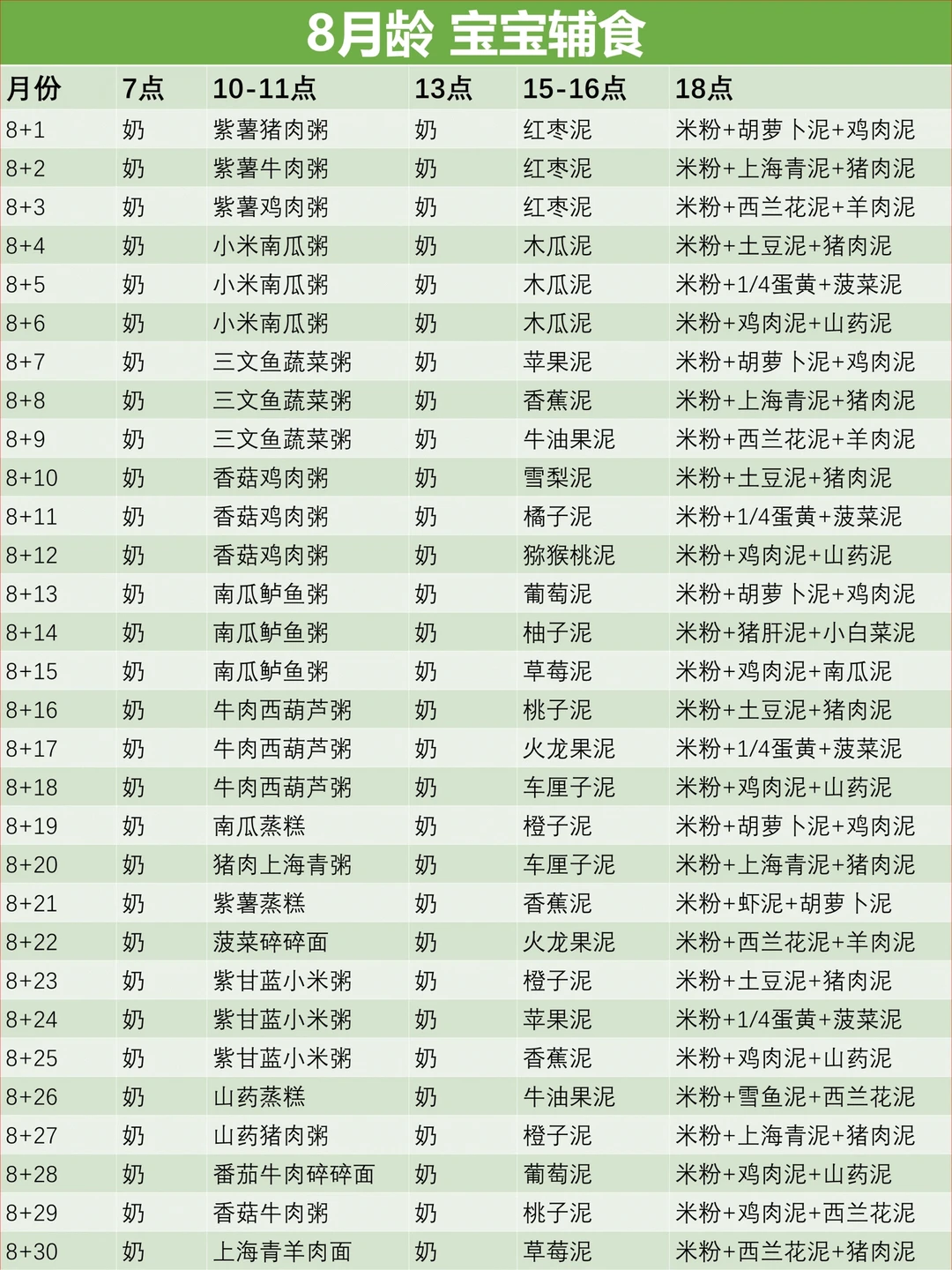 🌟时间安排:8:00奶--12:00辅食+奶--15:00奶--16:00水果-- 18:00辅食—21:00奶