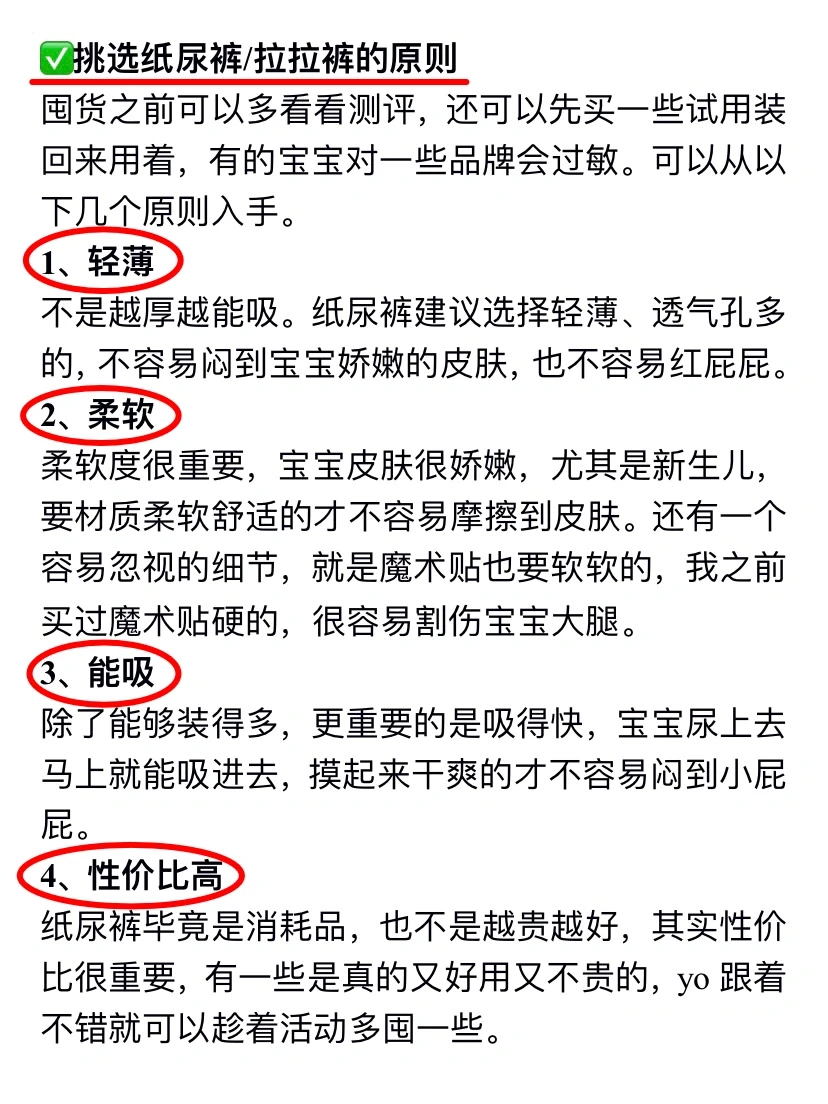 ✅ 挑选纸尿裤/拉拉裤的原则