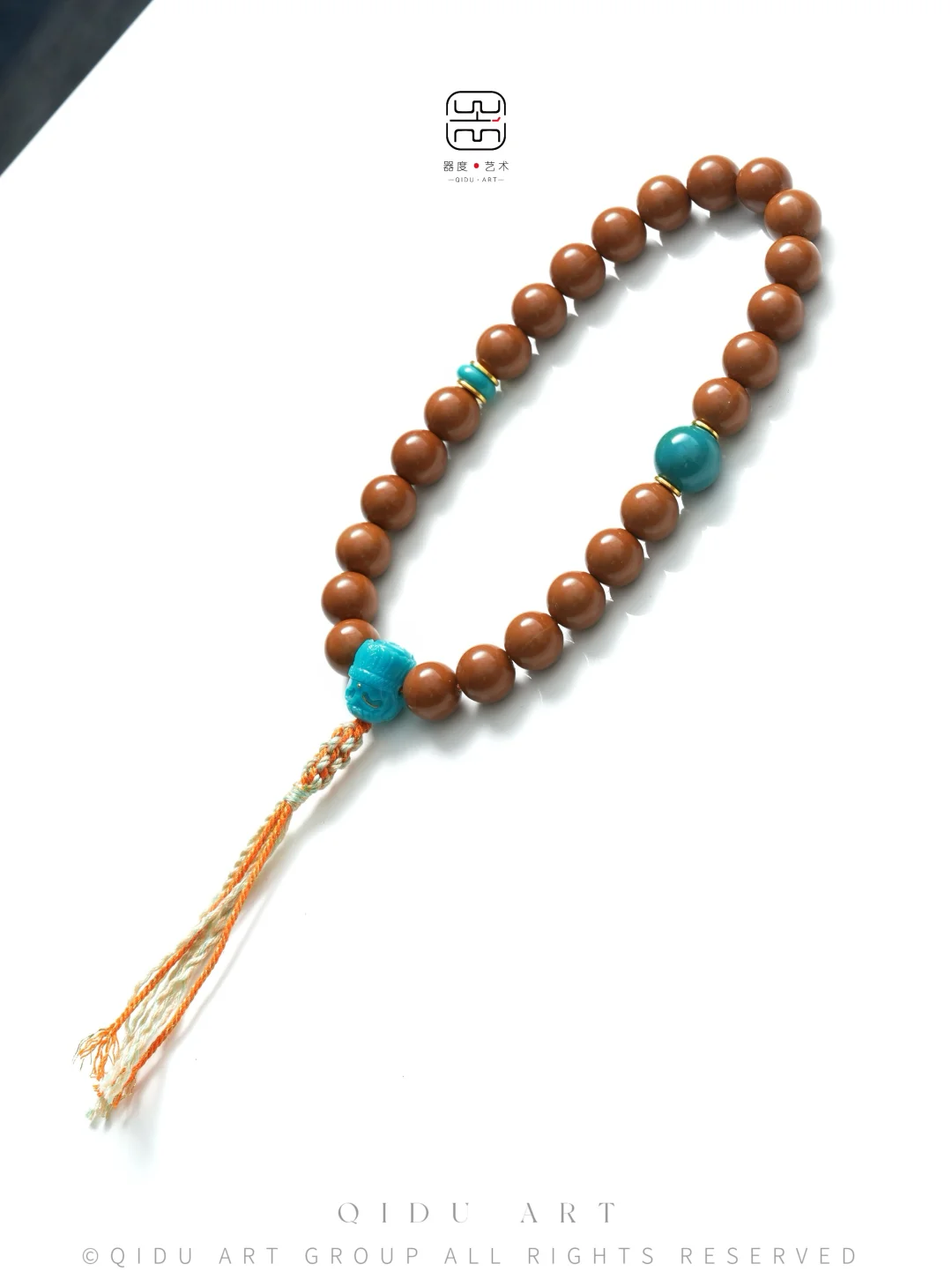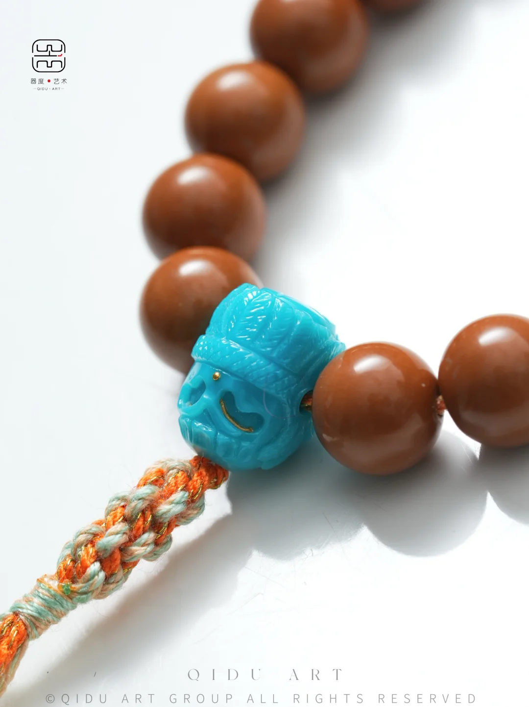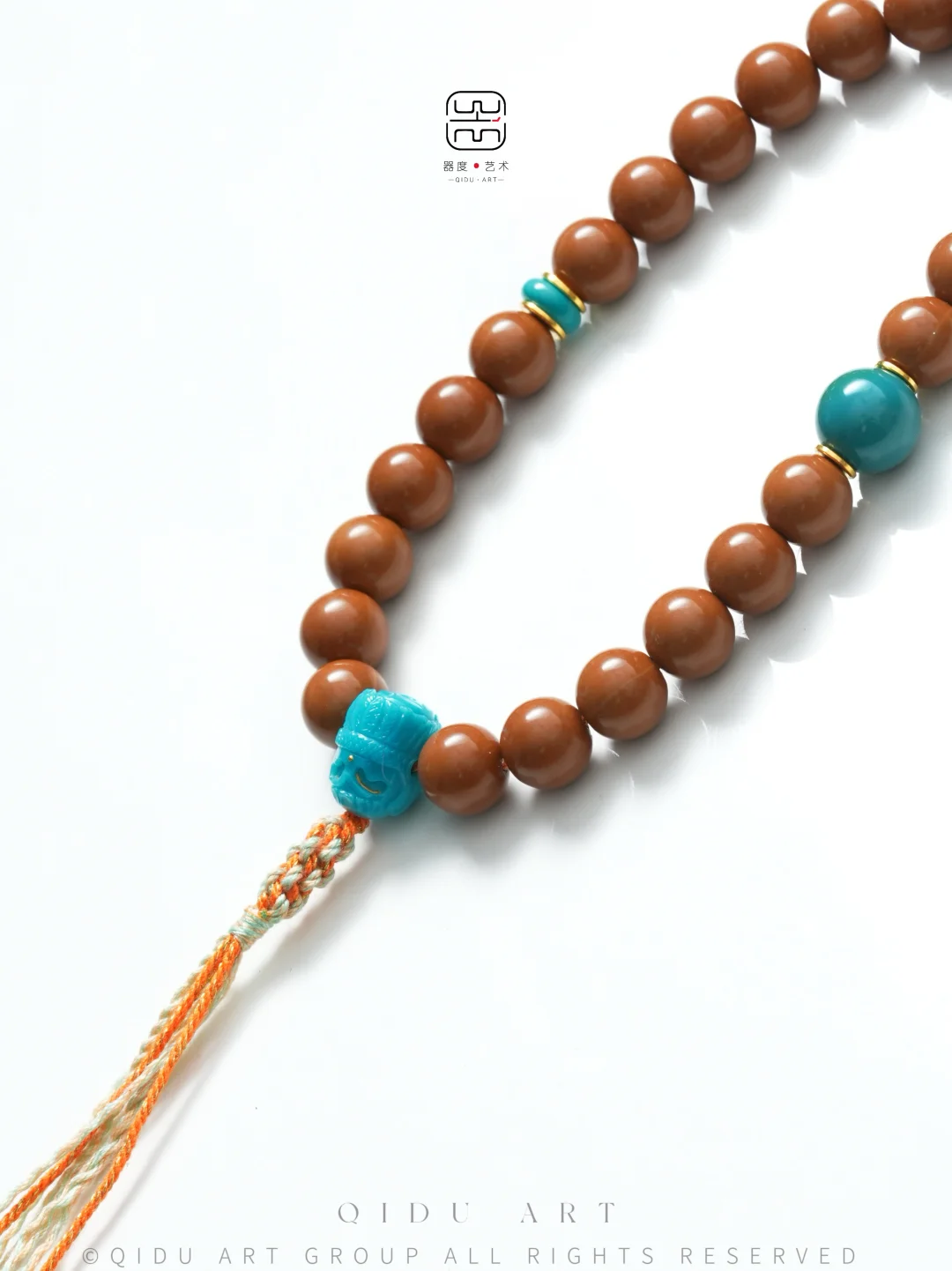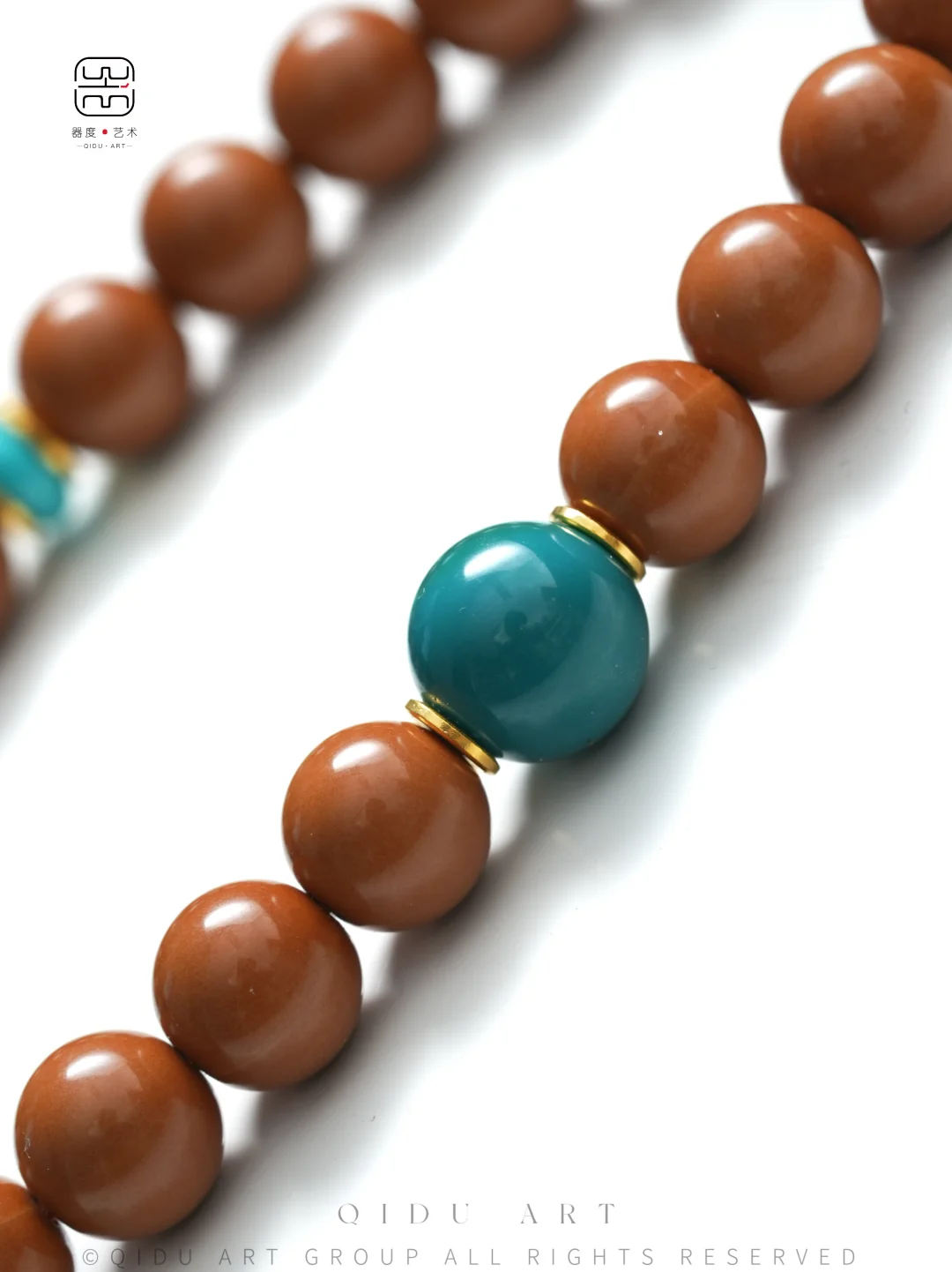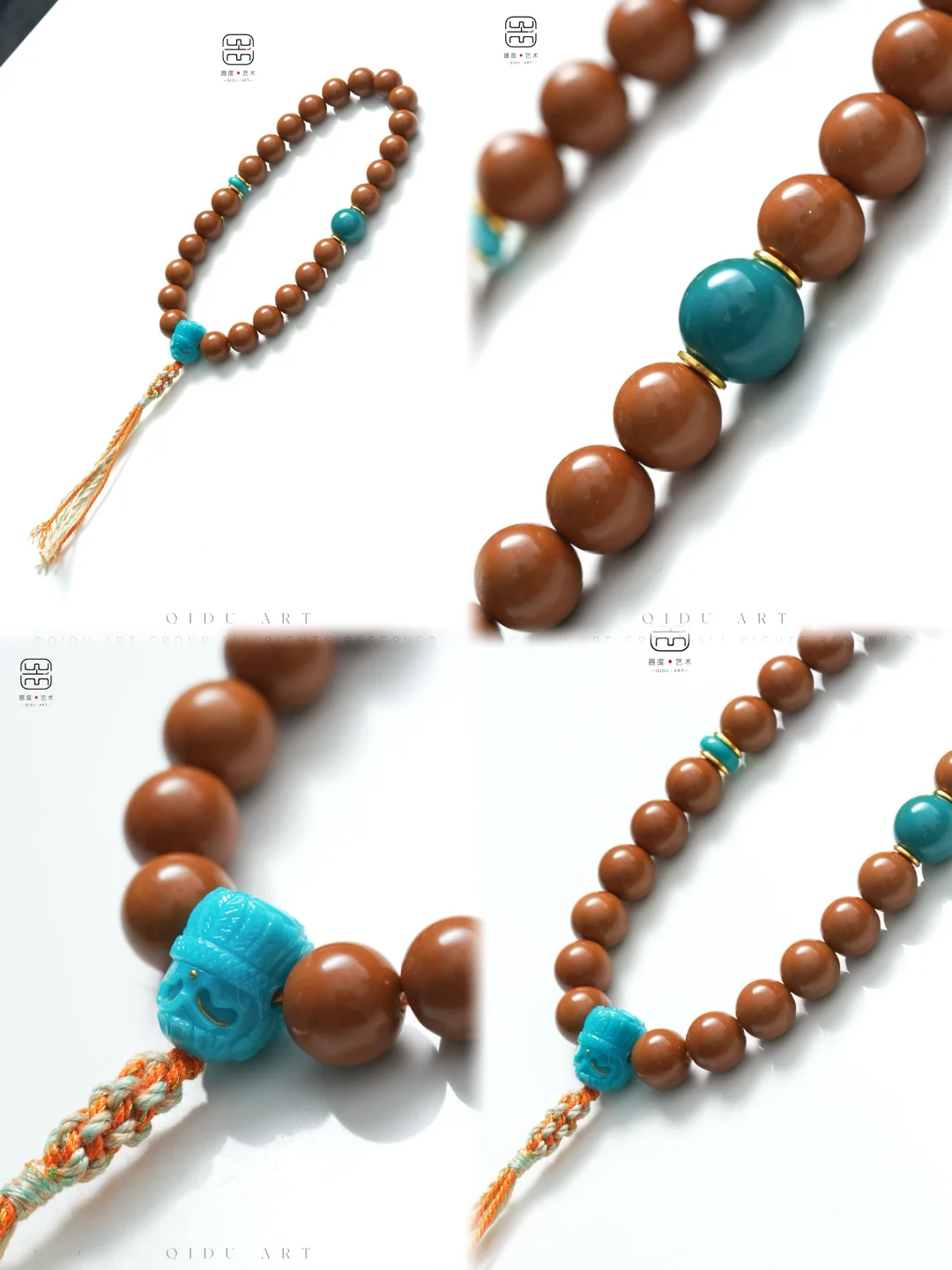 一套很blue blue的搭配💙 云盖寺的高瓷蓝阿呆三通 蓝绿俏色很蓝色星球的圆珠高瓷松石 一整套棕/蓝/金/橙的混色搭配 出片系数💯好玩好盘💯