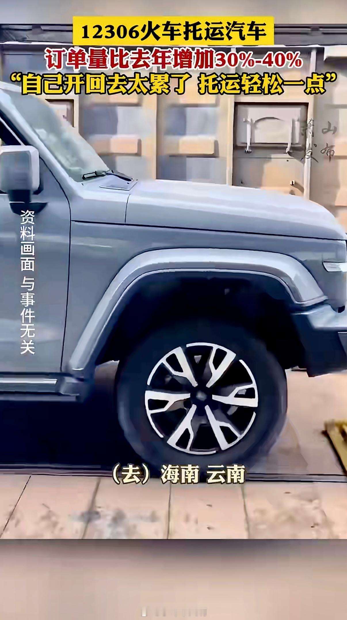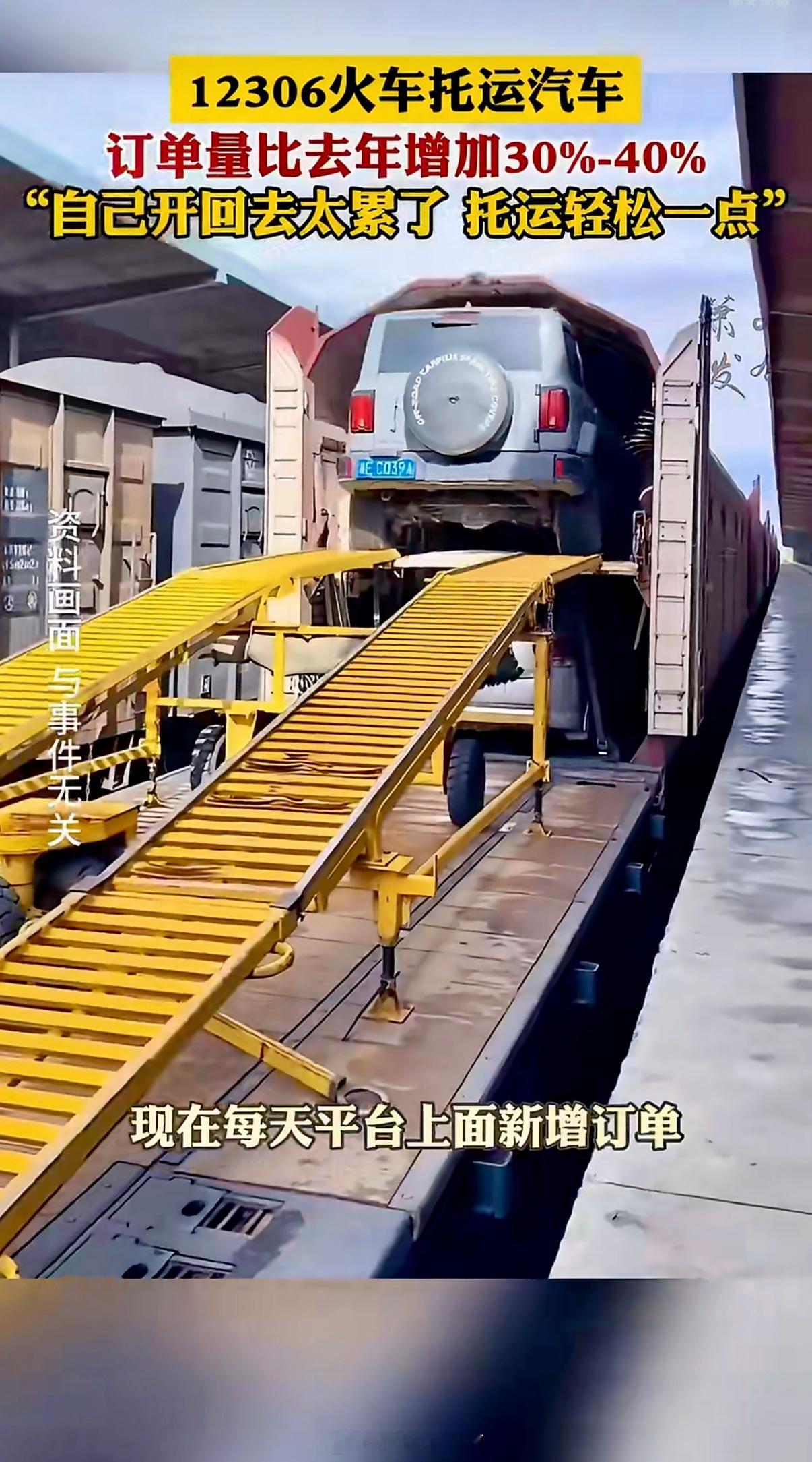 春节临近,汽车托运火出圈!据最新数据,12306火车托运汽车的订单量同比激增30%至40%。不少旅客坦言:“自己开车回家太累,不如把车‘寄’回去,人坐高铁轻松到家。”目前,无论是私家车还是商品车,都能通过铁路办理托运服务。操作也很简单:打开铁路12306 App,进入“第三方服务”,点击“汽车托运”,即可跳转至国铁官方汽车托运小程序,按提示完成下单流程。12306托运汽车订单火爆 旅客回应用12306托运汽车返乡