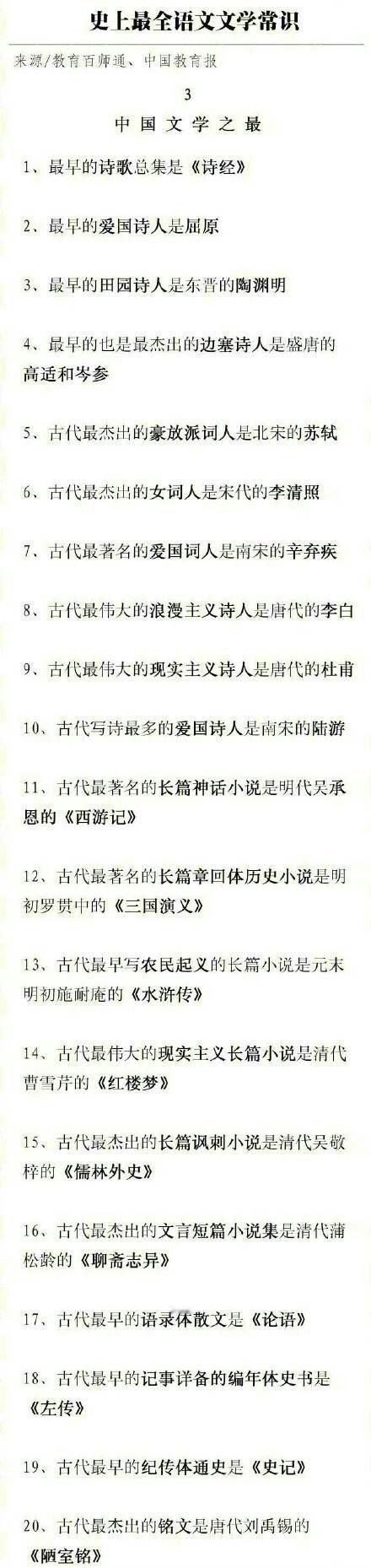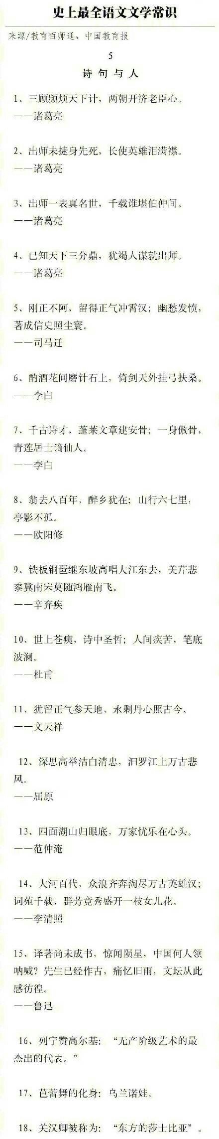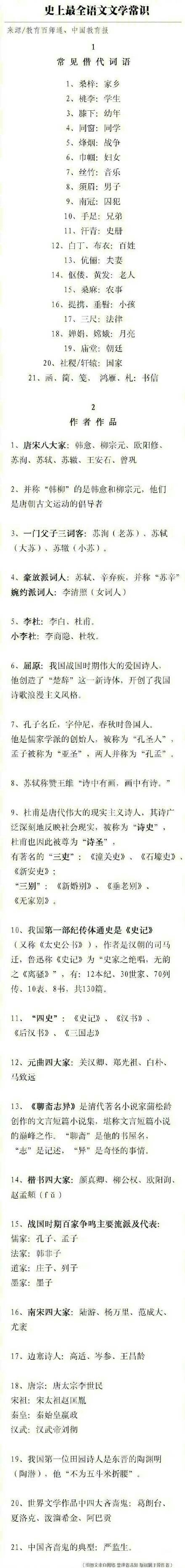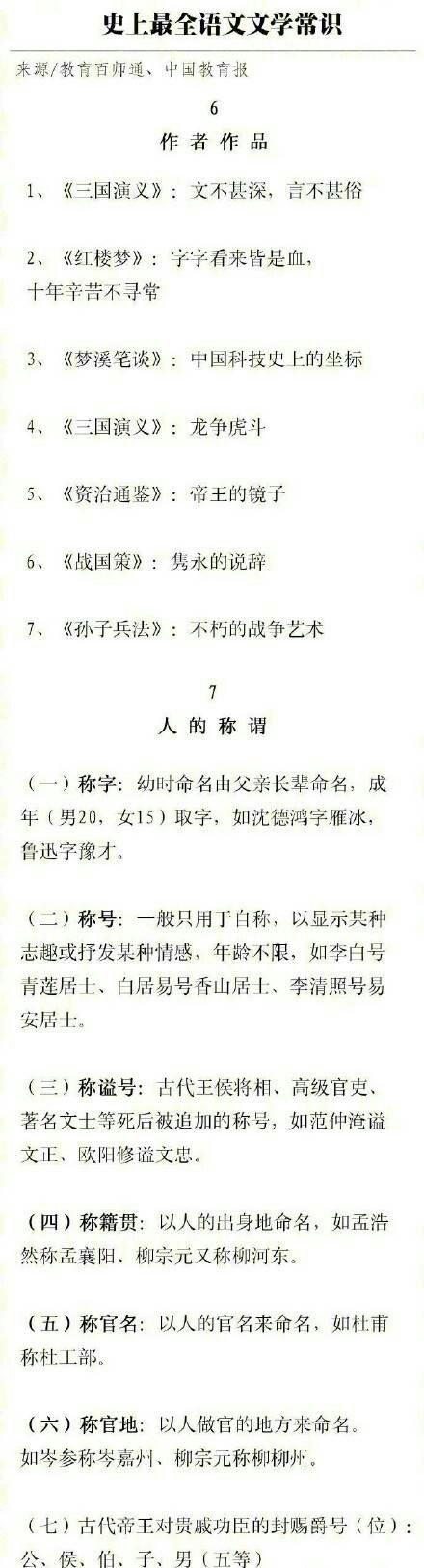 史上最全的语文文学常识长图,需要的童鞋们赶紧转发收藏吧。
