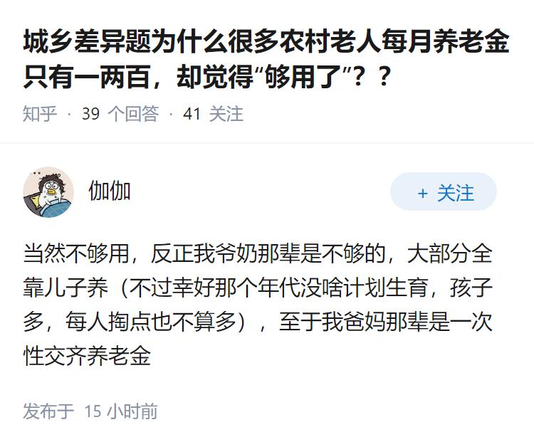 城乡差异题为什么很多农村老人每月养老金只有一两百,却觉得“够用了”??