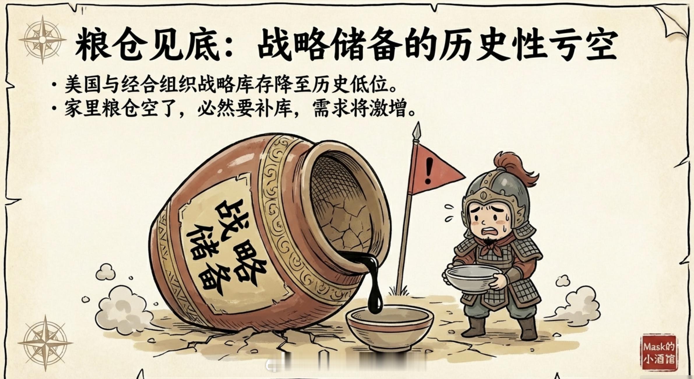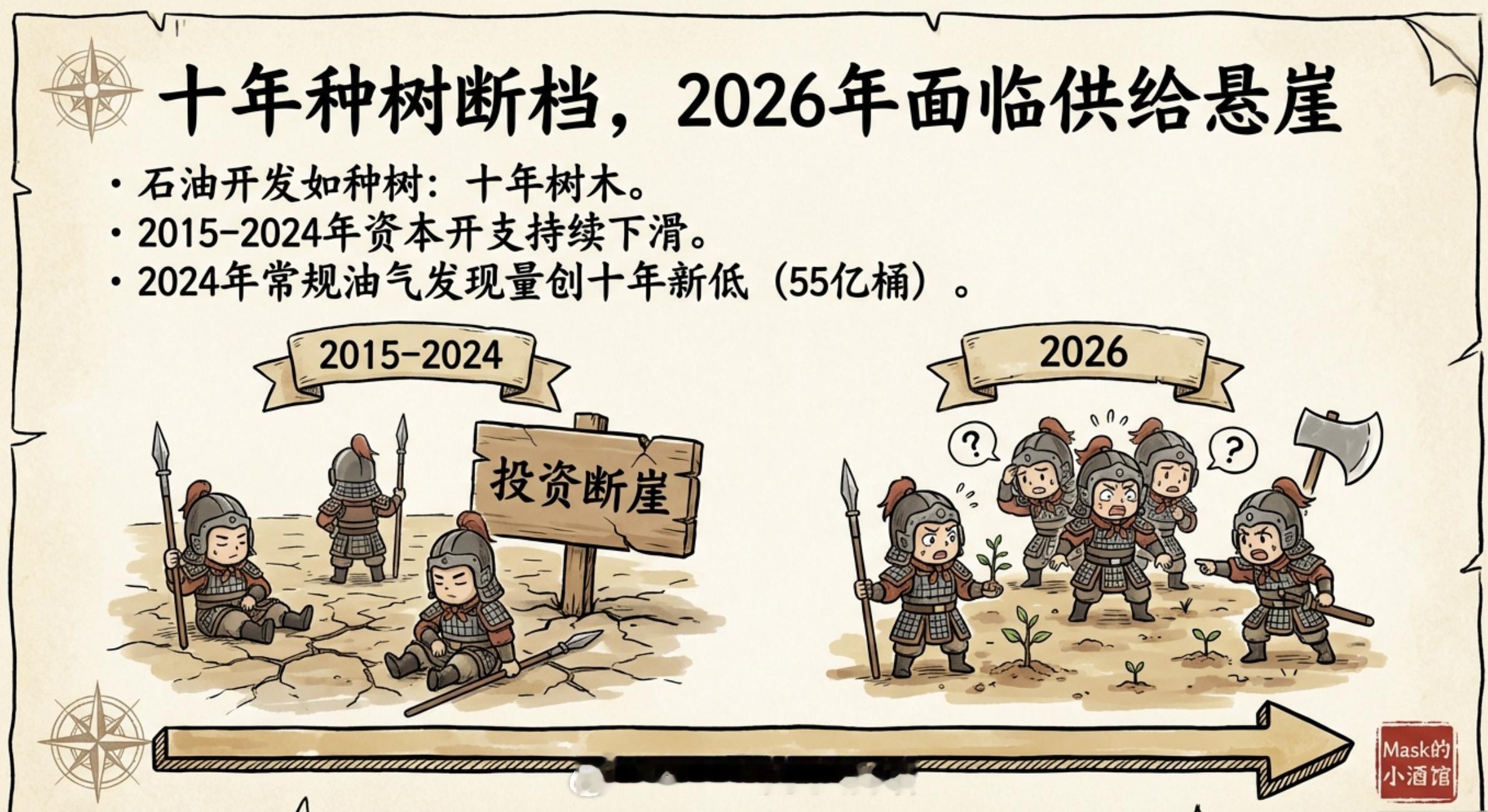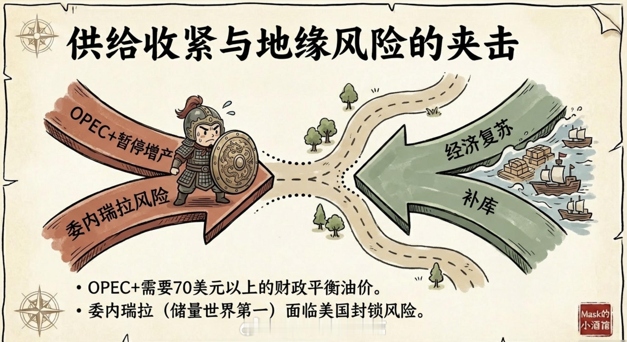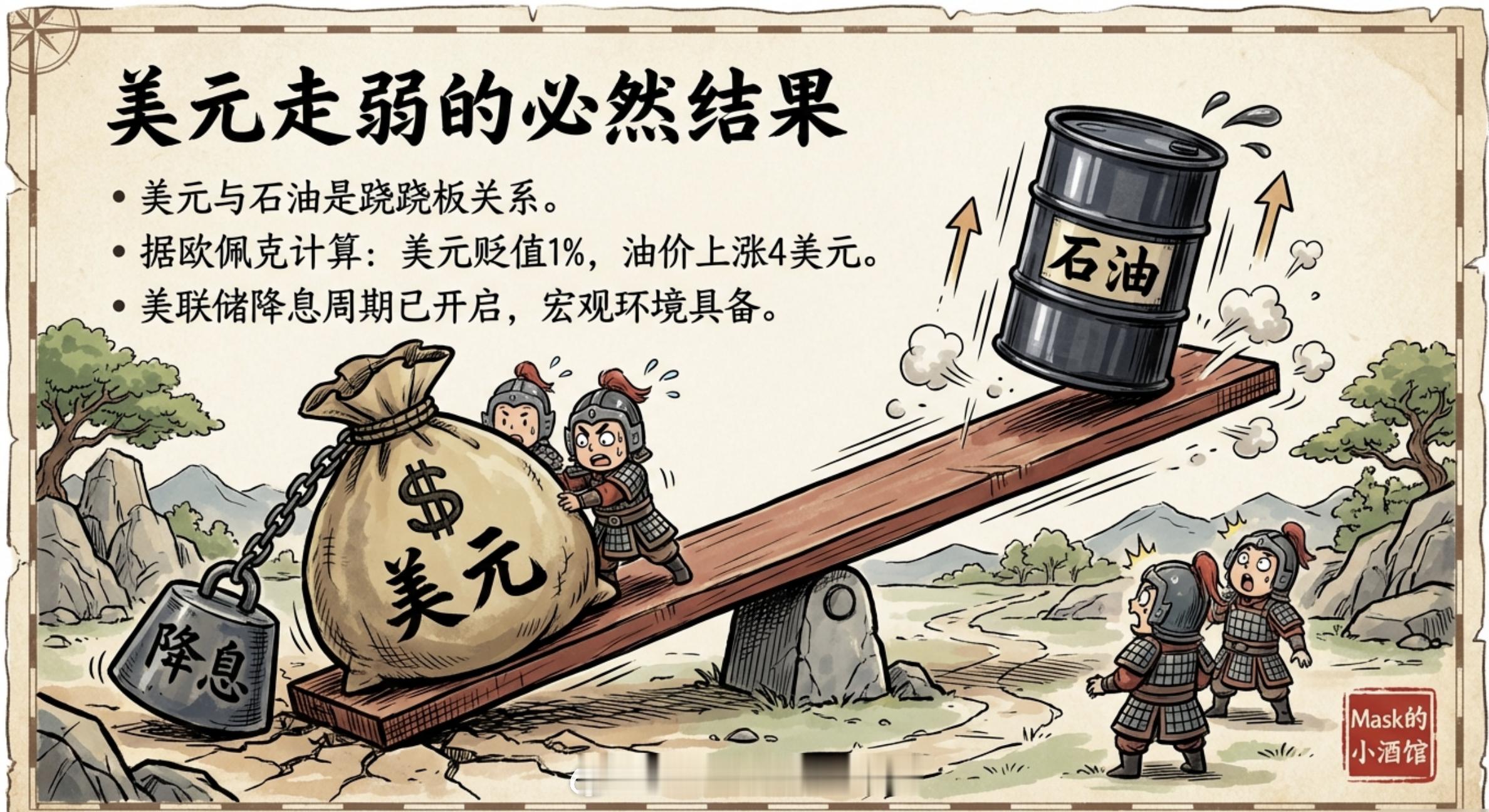 石油石化的周期要来了前一段时间说的石油石化,我是没想到后面说了还能再涨10个点,看了文章的朋友应该都吃肉了吧,今天就再把这个逻辑分析一下。石油石化的超级周期,真的要来了。很多人只看到黄金涨了50%,铜价翻了倍,却没注意到一个更大的机会正在悄悄筑底。那就是石油石化。点赞收藏,这可能是你能看到的最真实的石油石化分析。先说一个事实,从古至今,能源价格的大趋势都是一直向上的。因为人类发展从来就绕不开能源。能源就像人体的血液,没有它,整个工业文明就会停摆。1970年,石油价格约为1.8美元每桶。到1974年首次石油危机时,价格飙升至11.58美元每桶,1980年第二次石油危机期间达到36.83美元每桶。2008年7月,原油价格创下147.27美元每桶的历史高点。你看,从几美元到一百多美元,石油价格的长期趋势就是向上的。这不是偶然,这是规律。为什么?因为人类越发展,对能源的需求就越大。就像一个人越长越高,饭量自然越来越大,价格上涨是必然的。短期内油价会波动,但长期看,价格中枢一直在抬升。这是由能源的稀缺性和人类需求的增长共同决定的。那为什么现在石油还在底部?这恰恰是机会所在。2026年1月,布伦特原油价格在60美元附近徘徊,比2025年年初已经跌了约30%。但这个位置非常关键。先看这个价格本身。60美元是美国页岩油的盈亏平衡线。低于这个价格,美国页岩油企业就亏本,产量增长就会停滞。这就像卖菜的,菜价跌到成本线以下,谁还愿意种菜?油价跌到成本线,这本身就是一个强支撑,再往下跌的空间已经很有限了。而且过去十年,全球石油行业发生了一件大事:投资断崖式下跌。2015年到2024年,全球油气上游投资持续下滑。2020-2021年因为疫情,资本开支更是缩减到历史低位。石油不是想生产就能生产的,它就像种树一样,十年树木,百年树人。一个大型油田从勘探到投产,整个周期要10-15年。过去十年投资不足,意味着2026年之后,新增产能会出现断档。就像十年前没种树,现在想要木材也没有了。而且2024年全球常规油气发现量跌至55亿桶油当量,是近十年新低。未来可开采的储量在减少,长期看石油供应会越来越紧张。还有一个更直接的信号:库存见底了。2022年俄乌冲突后,美国为了打压油价,大量抛售战略石油储备。现在美国和经合组织的战略库存已经降到历史低位。这就像家里粮仓见底了,不补粮能行吗?一旦各国开始补充战略储备,需求就会激增。而供应端又受限,供需矛盾会迅速显现。所以你看,价格到了成本线,产能投资断档,库存历史低位,石油确实在底部了。筑底是一回事,但为什么一定会涨?这里有一个历史铁律:美元贬值周期,油价都会暴涨。为什么?因为石油是以美元计价的。美元和石油就像跷跷板,美元这头跌下去,石油那头就会翘起来。美元贬值时,使用其他货币购买石油变得更便宜,这会刺激需求,推动油价走高。历史已经反复验证过这一点。2007年到2008年,美元贬值和投机资金炒作是推动油价运行的主要动力,油价从2007年1月一路上涨到2008年7月,接近150美元每桶。据欧佩克计算,美元每贬值1%,国际石油一桶就上涨4美元。你想想,如果美元贬值10%,油价理论上就要涨40美元。而现在,美联储已经进入降息周期。降息意味着美元走弱、流动性增加。70年代两次石油危机期间,油价涨幅分别达到252%和207%。虽然当时有地缘因素,但美元贬值是推动油价暴涨的重要力量。所以宏观环境已经具备,美联储降息、美元走弱,这些都在为油价上涨创造条件。更关键的是,供需基本面在反转。供给端正在收紧。OPEC+已经宣布2026年一季度暂停增产。为什么暂停?因为OPEC+主要成员国的财政平衡油价普遍在70美元以上,油价长期在60美元附近,这些国家财政根本扛不住。而且地缘风险在加剧。2026年1月初,美国对委内瑞拉采取了军事行动。委内瑞拉是什么地方?它的已探明石油储量高达3000亿桶左右,占全球储备的17.8%,位居世界第一。这就像全球最大的"粮仓"突然出了问题,市场怎么可能不紧张?虽然委内瑞拉目前石油产量占全球总产量的比例不到1%,但问题的关键不在于当前产量,而在于未来的不确定性。美国已宣布要控制委内瑞拉的石油产业,并实施了石油封锁,这意味着全球石油供应格局可能出现重大变化。需求端呢?全球经济在逐步复苏,传统石油需求依然有韧性。而且各国战略储备库存历史低位,接下来必然要补库,这会直接推动需求激增。这就像水龙头关小了,但用水的人更多了,水价自然要涨。还有一个很多人忽略的规律:大宗商品的轮动。历史上每一轮大宗商品超级周期,都不是所有品种一起涨,而是像接力赛一样,一棒接一棒。先是黄金白银,因为它们金融属性最强,货币超发时涨得最快。2025年黄金的涨幅已经证明了这一点。然后是工业金属,比如铜铝。经济复苏,基建投资增加,工业金属需求上升。过去一年铜价已经大涨。接下来就该轮到能源和化工了。为什么排在后面?因为石油供给相对灵活,OPEC+可以调节产量。但长期看,供给约束总会显现。现在黄金涨了,铜铝涨了,按照历史规律,接下来该轮到石油了。而且从估值角度看,金油比、铜油比都已经达到历史高位,这说明石油相对其他大宗商品明显被低估了。再加上政策也在助力。2025年工信部等部门出台了《化工行业产能置换实施细则》,严控新增产能。政策管住了供给端,化工企业不再盲