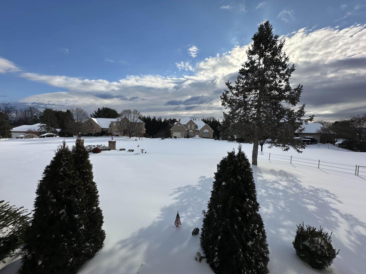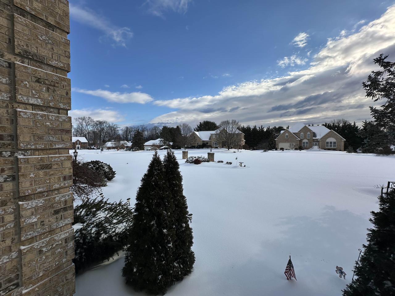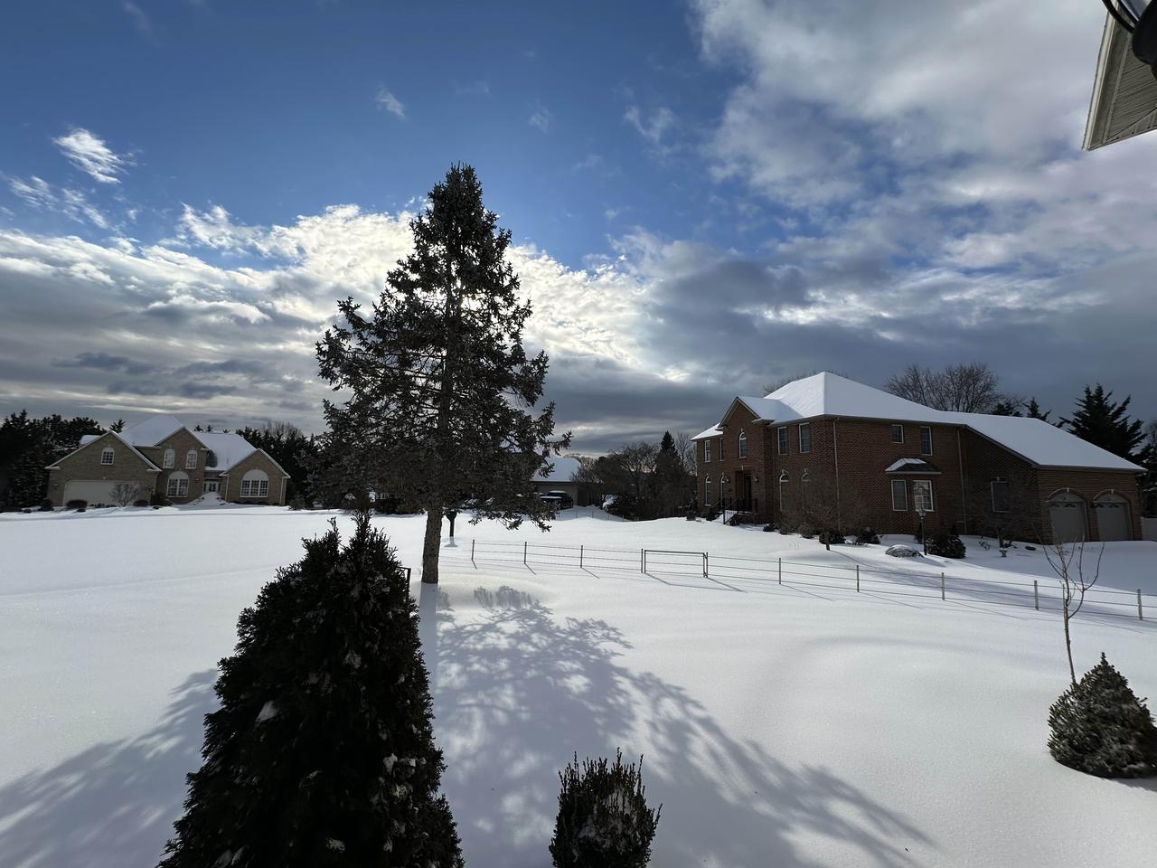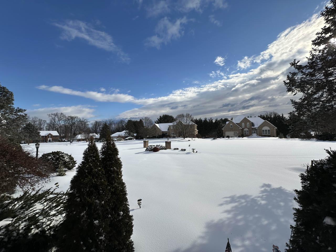 社区雪地里的房子和树木,好美啊!