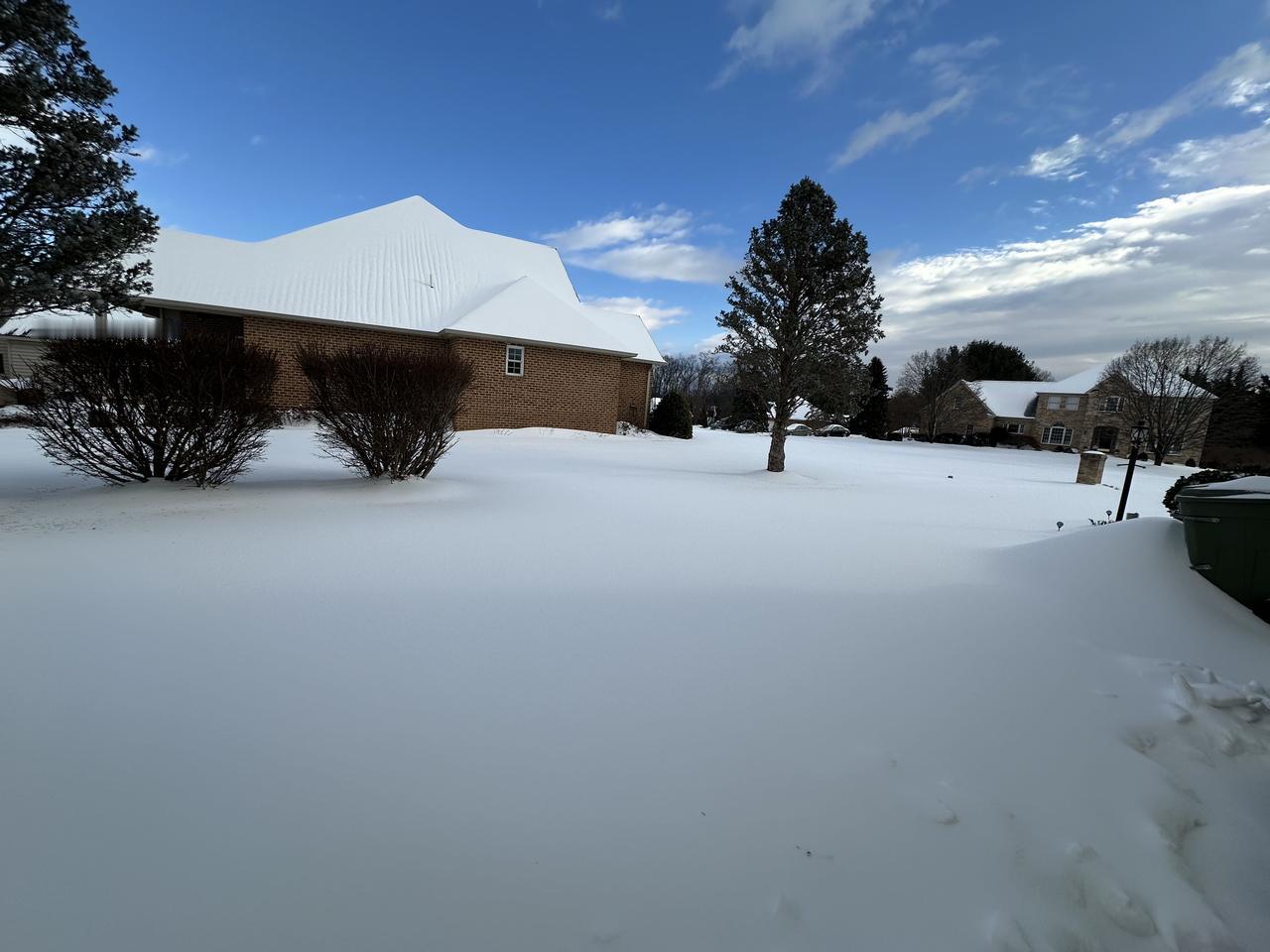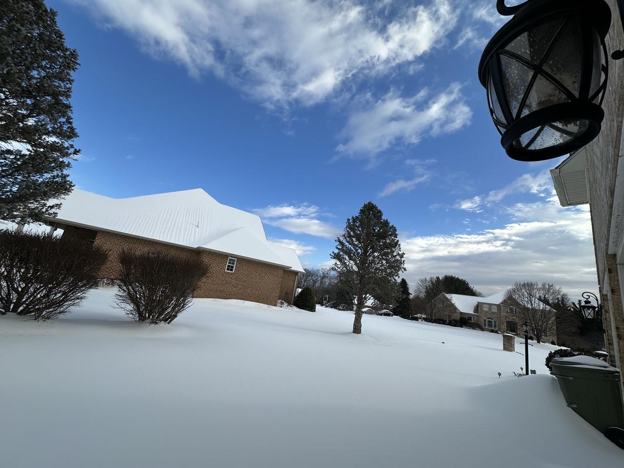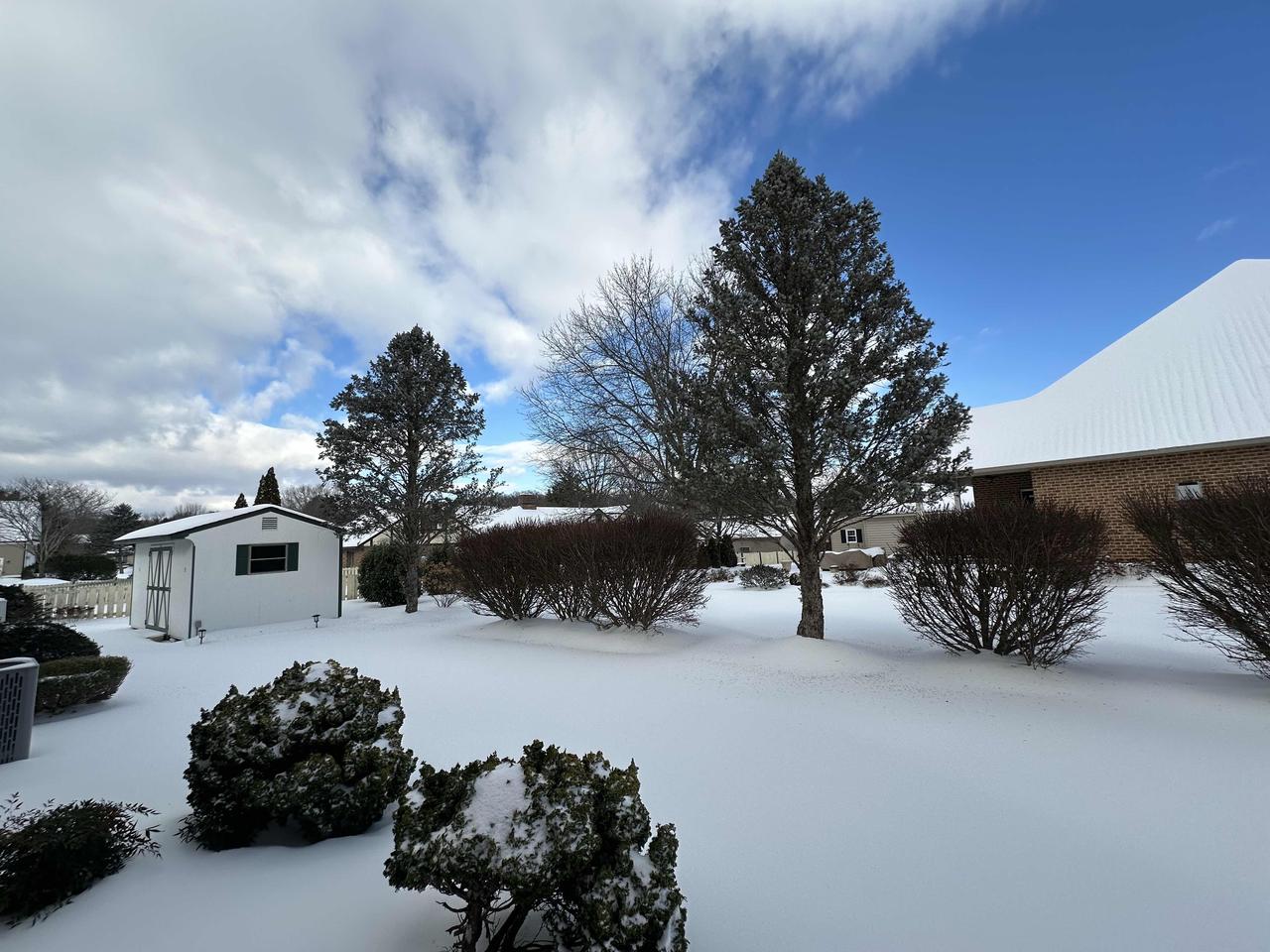 社区雪地里的房子和树木,好美啊!
