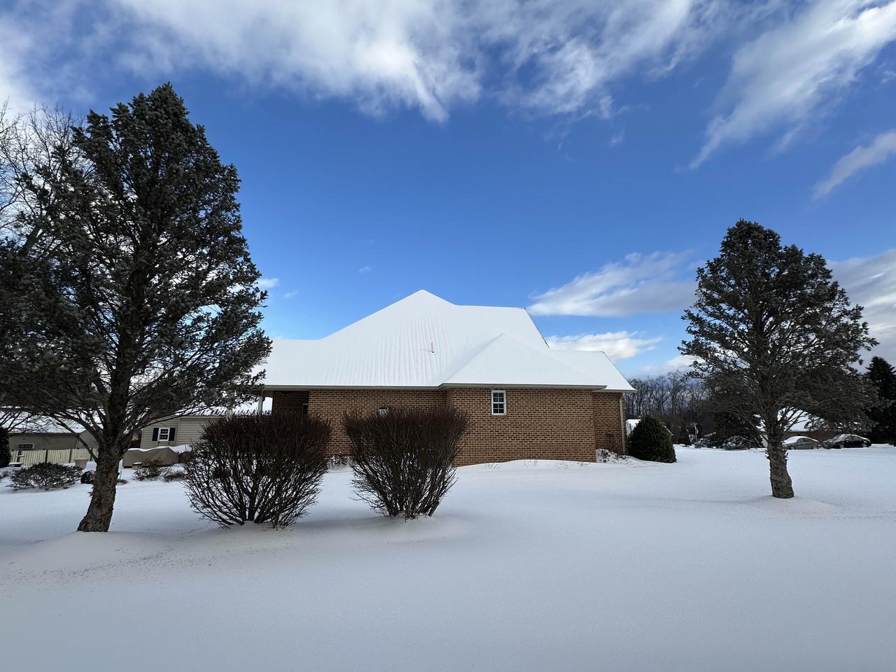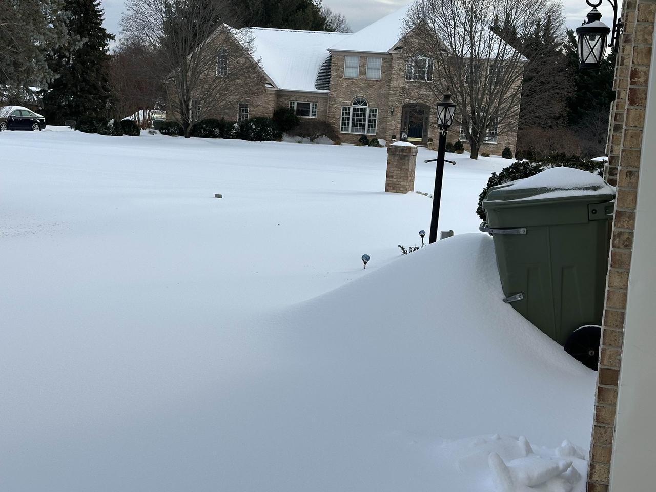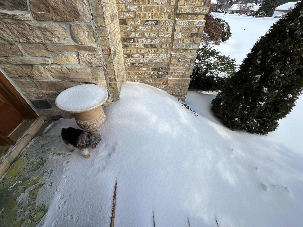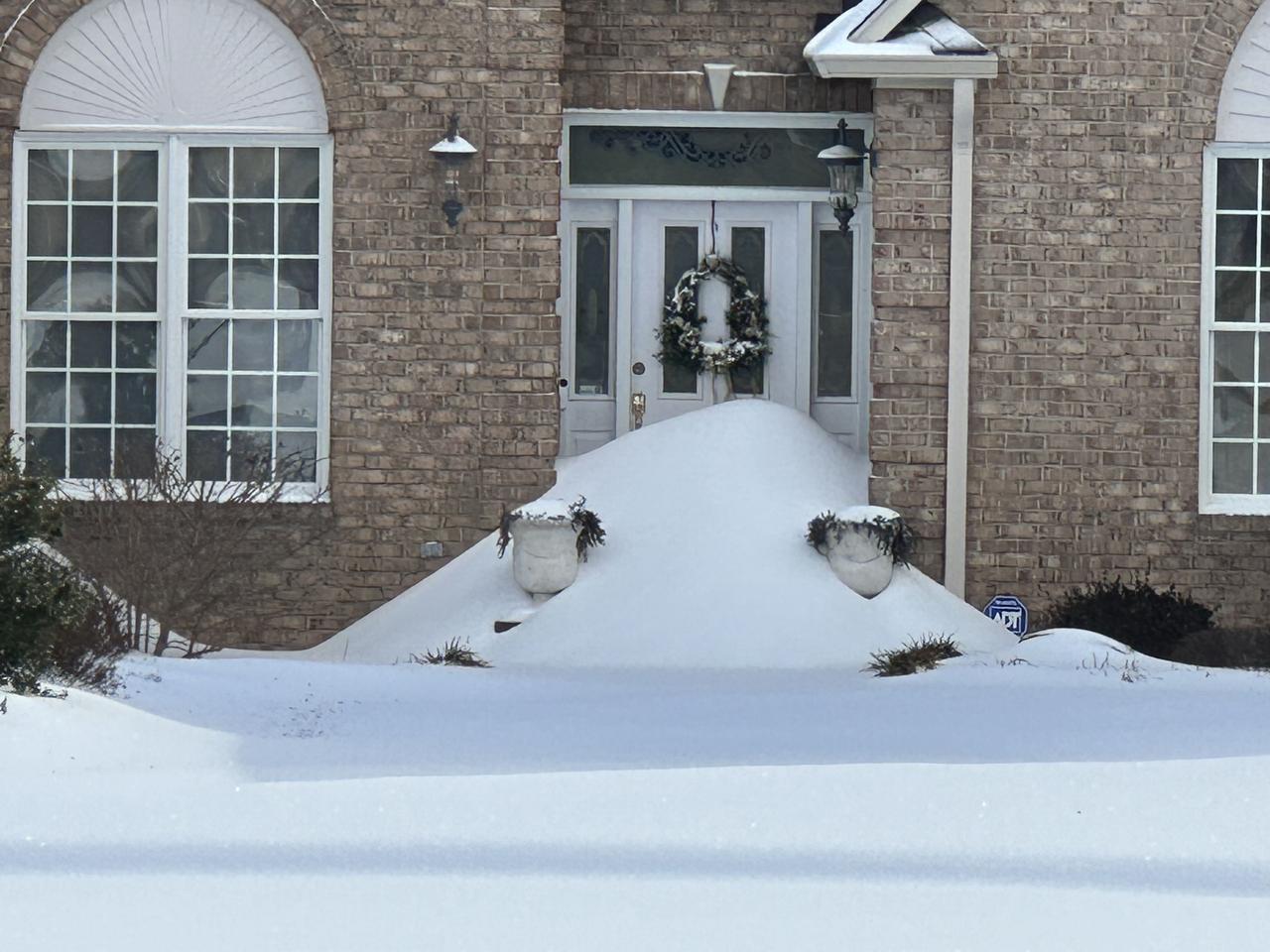 社区雪地里的房子和树木,好美啊!