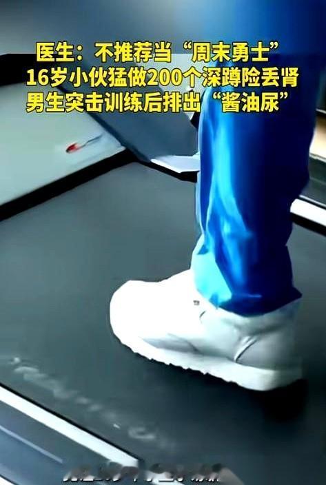 一口气200个深蹲,没热身。 一个16岁的半大小子,干完腿就废了,站不起来。 最吓人的是,尿出来的东西,是酱油色的。 送到医院,诊断书上几个字:横纹肌溶解,急性肾损伤。说白了,就是练得太猛,肌肉都“溶”了,里面的玩意儿全跑进血里,直接把肾给干趴下了。 差点人就没了。 每次看到这种新闻,我就想叹气。 现在的年轻人,总觉得年轻就是本钱,身体是个取款机,想怎么刷就怎么刷,密码就是“我能行”。 社交媒体上,全是各种打卡,今天跑10公里,明天就想冲半马;今天举50公斤,明天就想破纪录。好像健身成了一场军备竞赛,数字越大,就越牛逼。 图啥呢? 发个朋友圈收获一堆赞,然后躺ICU里等着肾透析吗? 健身,是为了让你活得更舒服,更有劲儿,是为了让你60岁还能爬山看风景,不是为了让你在16岁的年纪,就提前体验了一把生命的倒计时。 身体这东西,你得哄着来,不能硬刚。 你跟它商量着来,它才能把你当回事儿。