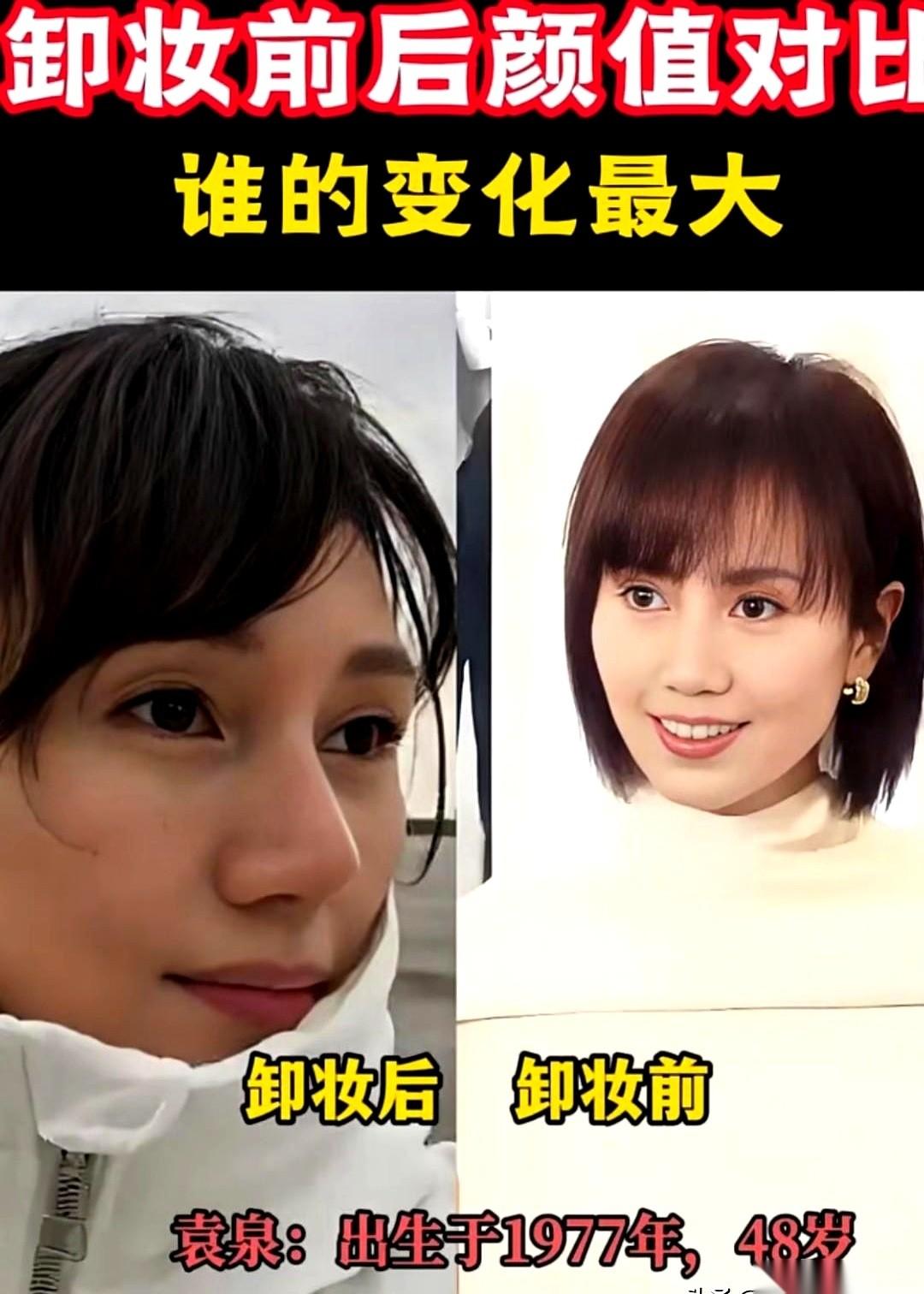 说真的,我从来不关心女明星卸了妆到底长啥样。 我更在意的,是她们这张脸,在卸掉所有角色、所有光环之后,还剩下什么。 你看袁泉的眼睛,那里头有星星,也有疲惫,但更多的是一股劲儿,一种“我知道我是谁”的劲儿。 你再看郝蕾,那张脸写满了“姐不陪你们玩了”的骄傲和不屑。美不美?太美了,美得有攻击性。 还有宁静,陈数,马伊琍……她们哪一个不是在岁月的河里真刀真枪地趟过来的? 咱们普通人也一样。 每天画上精致的妆,是给工作的“角色”穿上铠甲。 晚上回到家,卸了妆,镜子里那个有点倦容、有点雀斑的自己,才是真正的血肉之躯。 所以别再问谁变化大,谁更好看了。 皱纹是故事,松弛是生活。被岁月吻过的脸,比任何一张完美无瑕的假面,都他妈的带劲多了。