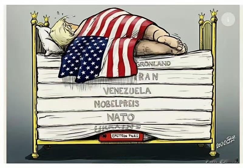 欧洲漫画:特朗普的床垫。 格陵兰、伊朗、委内瑞拉、诺贝尔和平奖、北约、乌克兰,为了把爱泼斯坦文件塞在最下面 漫画借“豌豆公主”对微小不适的敏感,暗喻特朗普无论如何堆砌政治议题,都无法掩盖这份丑闻带来的刺痛。层层包裹的争议之下,那份被刻意压在最下面的文件,恰恰是他最想摆脱却又摆脱不掉的“豌豆”。