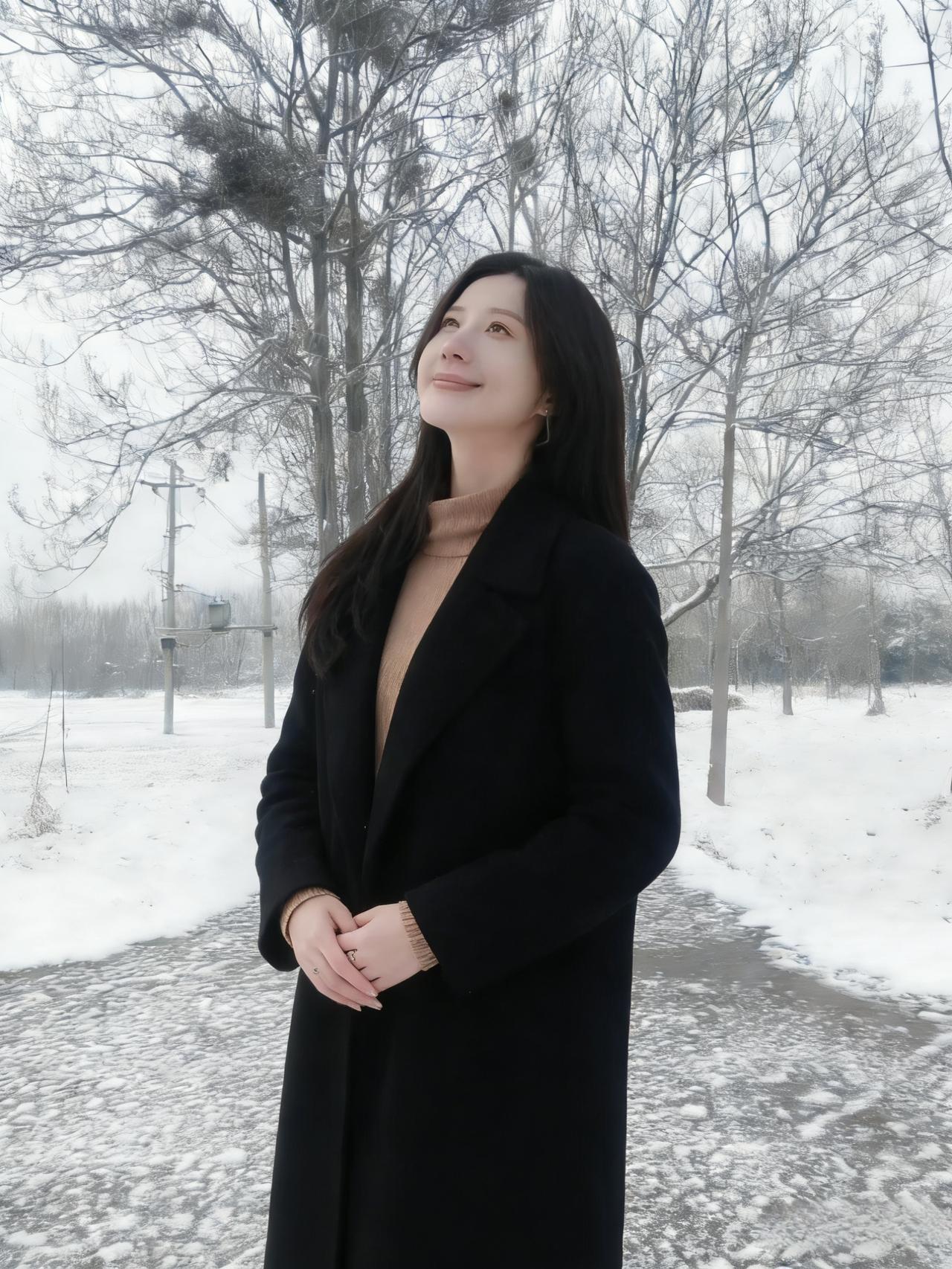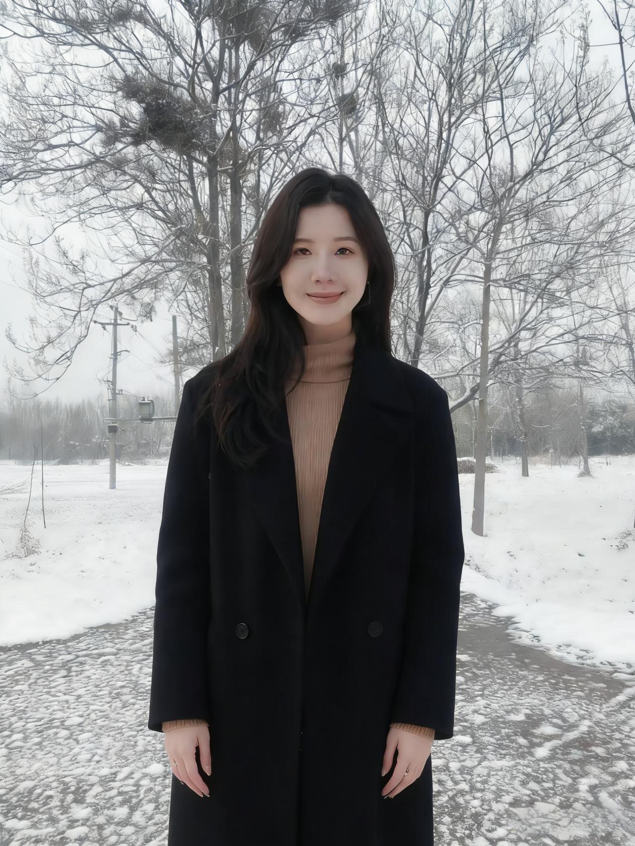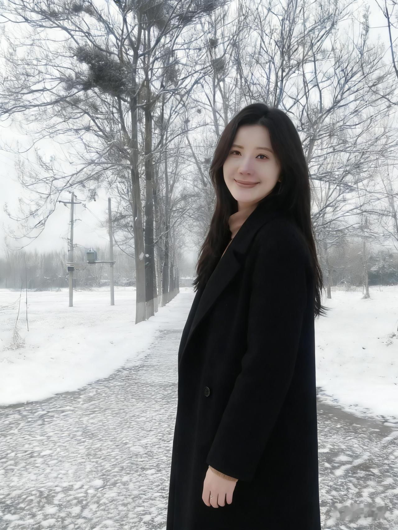 雪野连天际,寒林入望幽。 玄衣裁夜色,素领衬清秋。 立处凝寒色,眸中隐暖流。 风前身似玉,不与雪争柔。