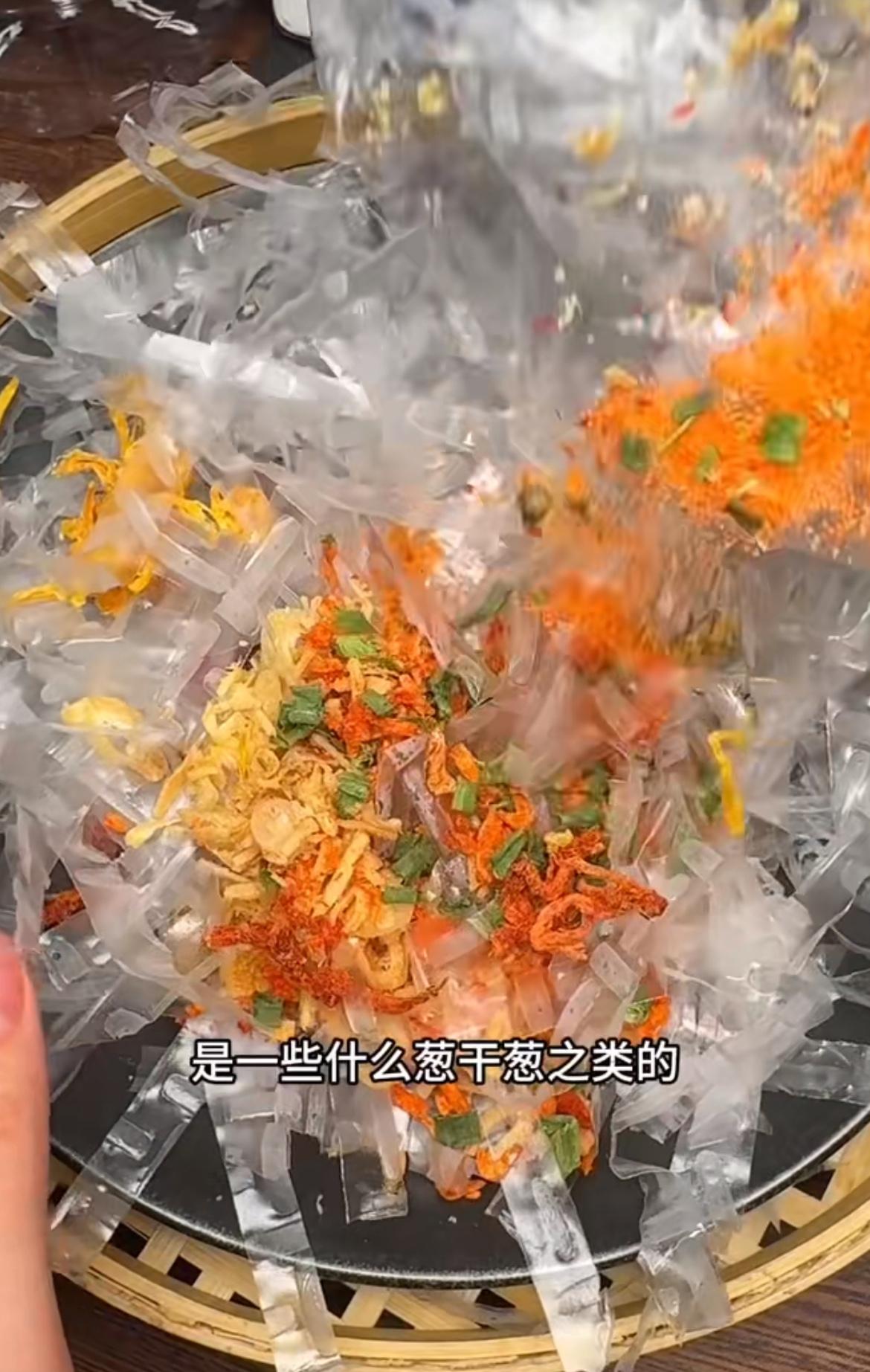 这个看起来像塑料袋的越南凉拌米粉,刚开始还真的以为是白色塑料袋,这是越南的一种小吃,一般加入调料和油,还有香辛料等拌一下可以吃了,吃起来有点干巴,但是味道像辣条,还可以加热水,吃起来有点像粉条,味道不是很好